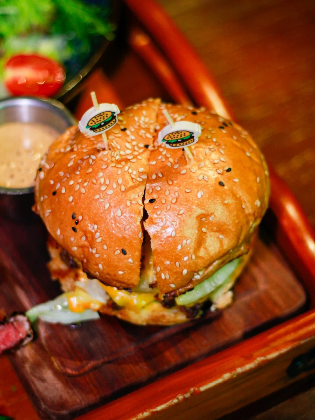 这家的手工汉堡简直了,牛肉菠萝芝士的组合太神仙!每一口都是爆汁的幸福感,战斧牛排也是必点,下次约会就选这儿了!😍
