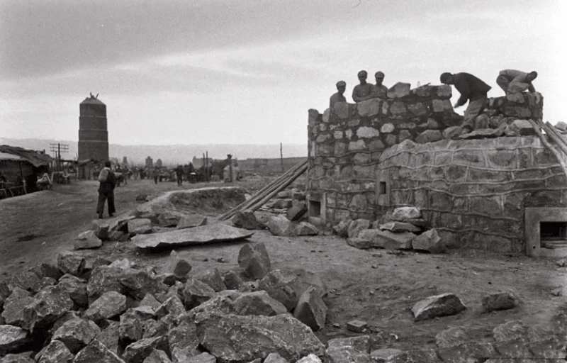 图6:1948年11月,山西国民党军阎锡山部正在修筑碉堡,计划据守太原继续顽抗。阎锡山盘踞山西三十多年,势力根深蒂固。他不仅在太原修筑了大量的防御工事,同时还依靠70多个情报单位的3000多名特务对军队督战