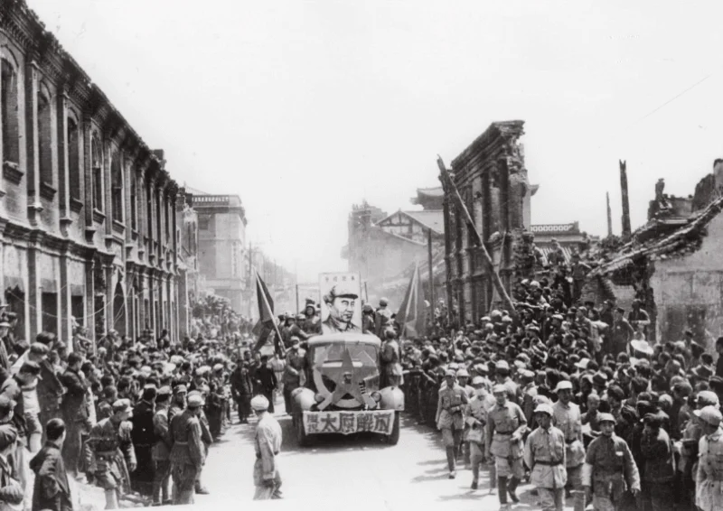 图2:1949年4月24日太原解放,解放军在太原市民的夹道欢迎下进入太原城。解放太原战役从1948年10月5日至1949年4月24日共进行了近半年,是解放战争时期持续时间最长、战斗最激烈、伤亡最惨重的城市攻坚战之一