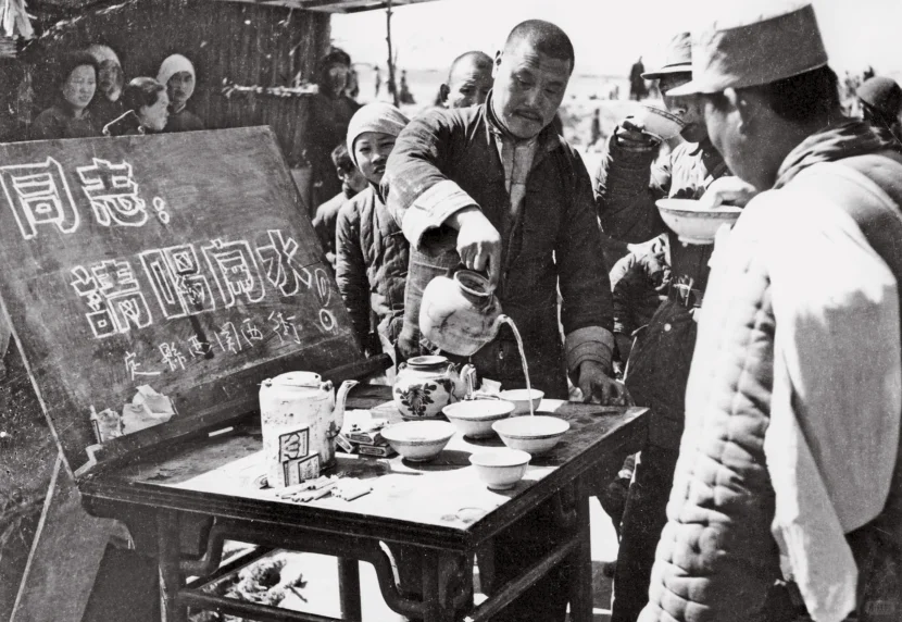 图8:1949年3月,进军太原的解放军受到沿途群众的热烈欢迎。阎锡山虽然将山西打造得如自己独立王国一般水泼不进,但却并没有获得老百姓支持,一出城市就如同变成“瞎子”“聋子”,只能处于被动挨打的境地