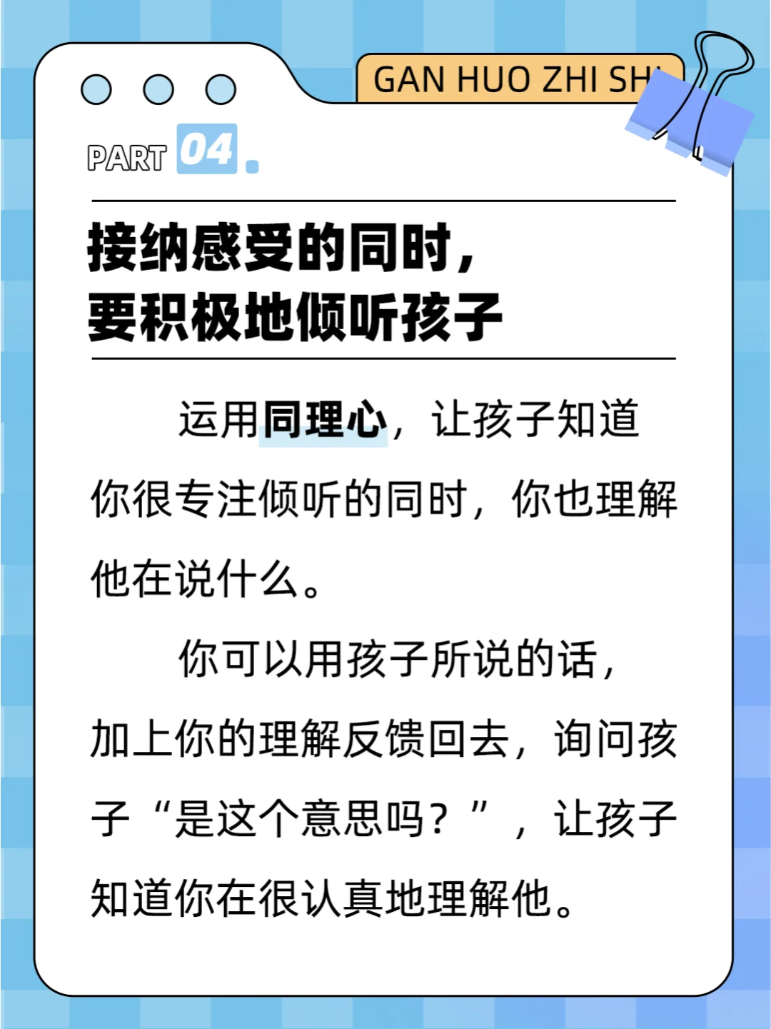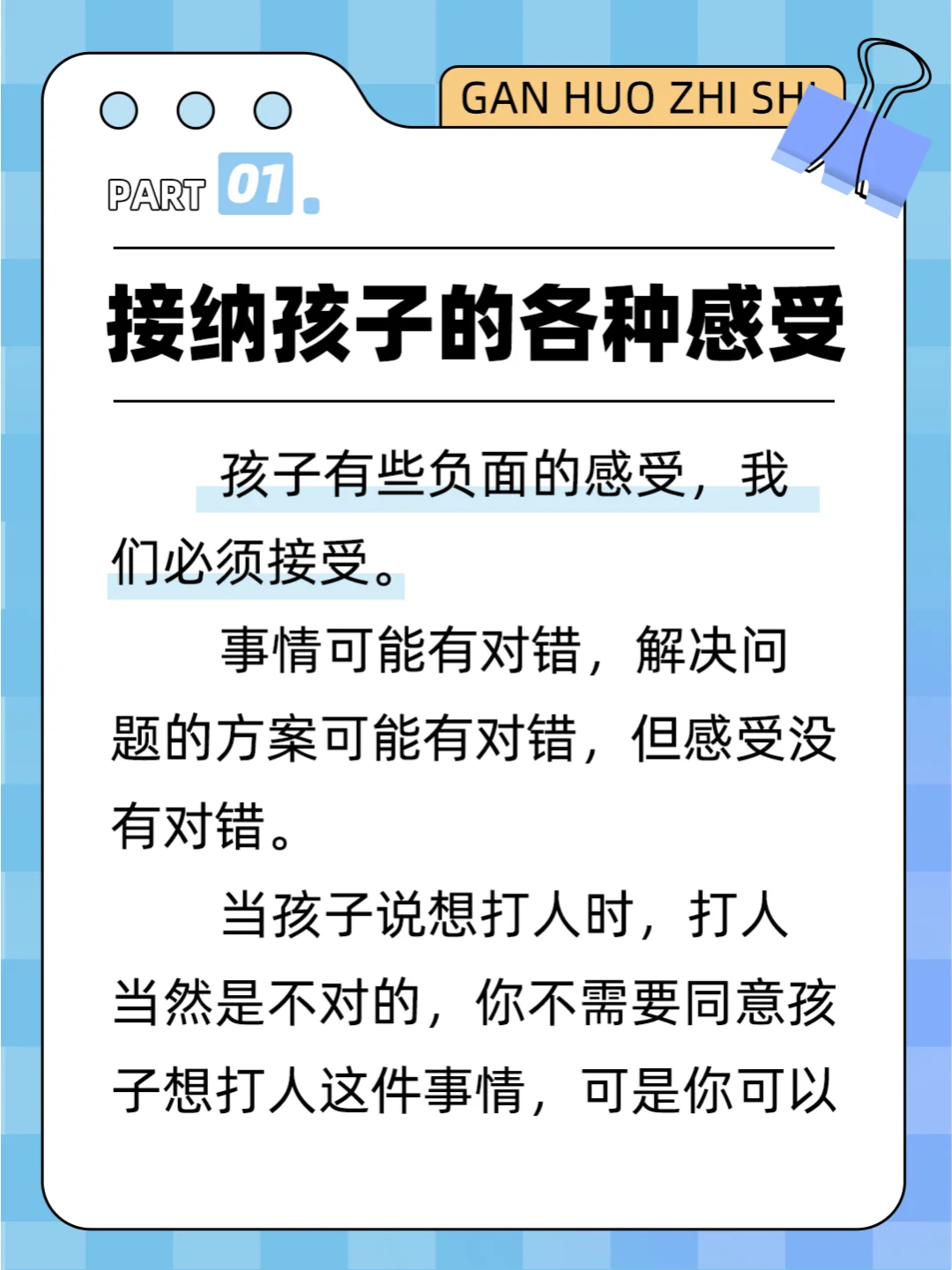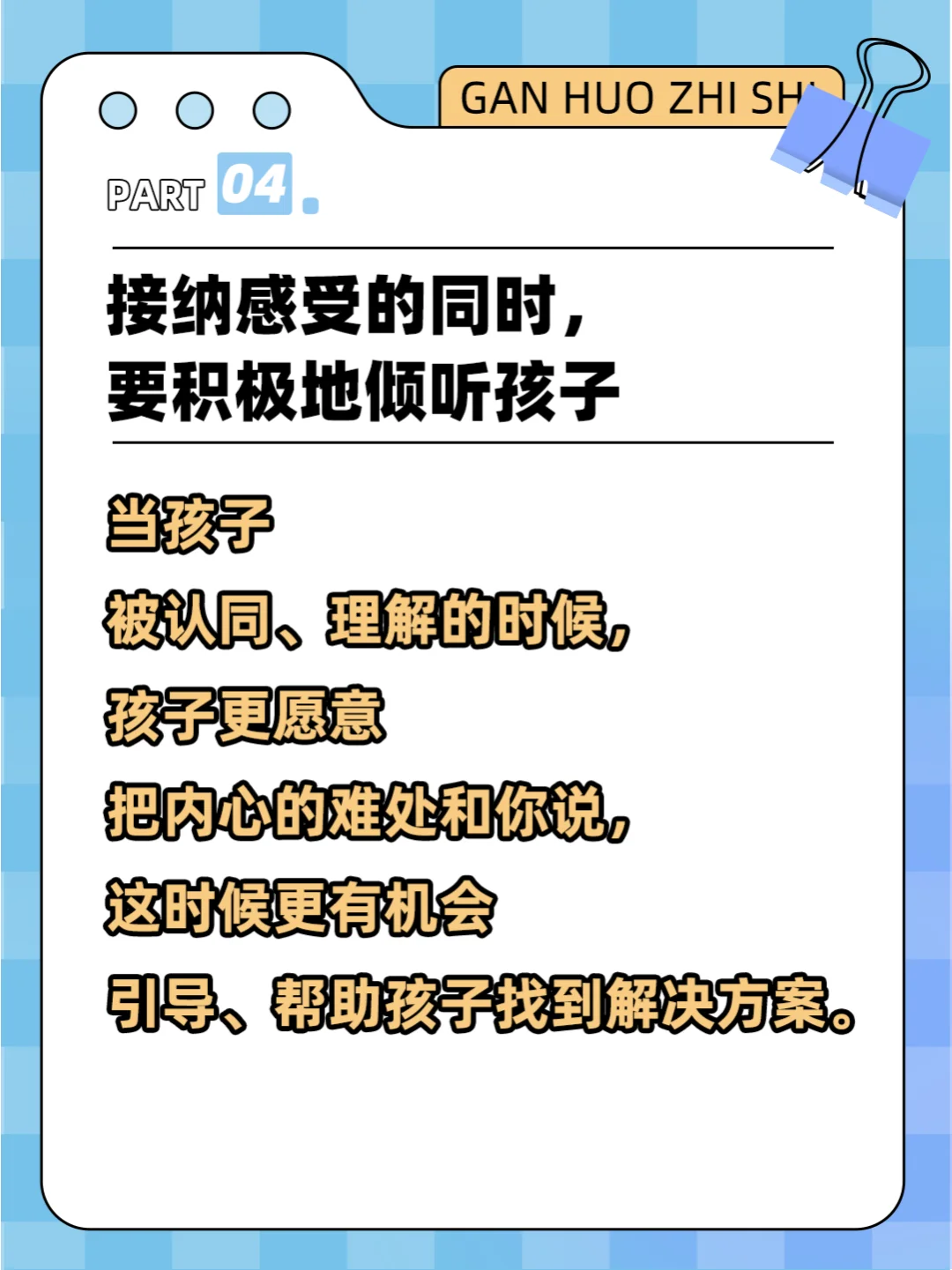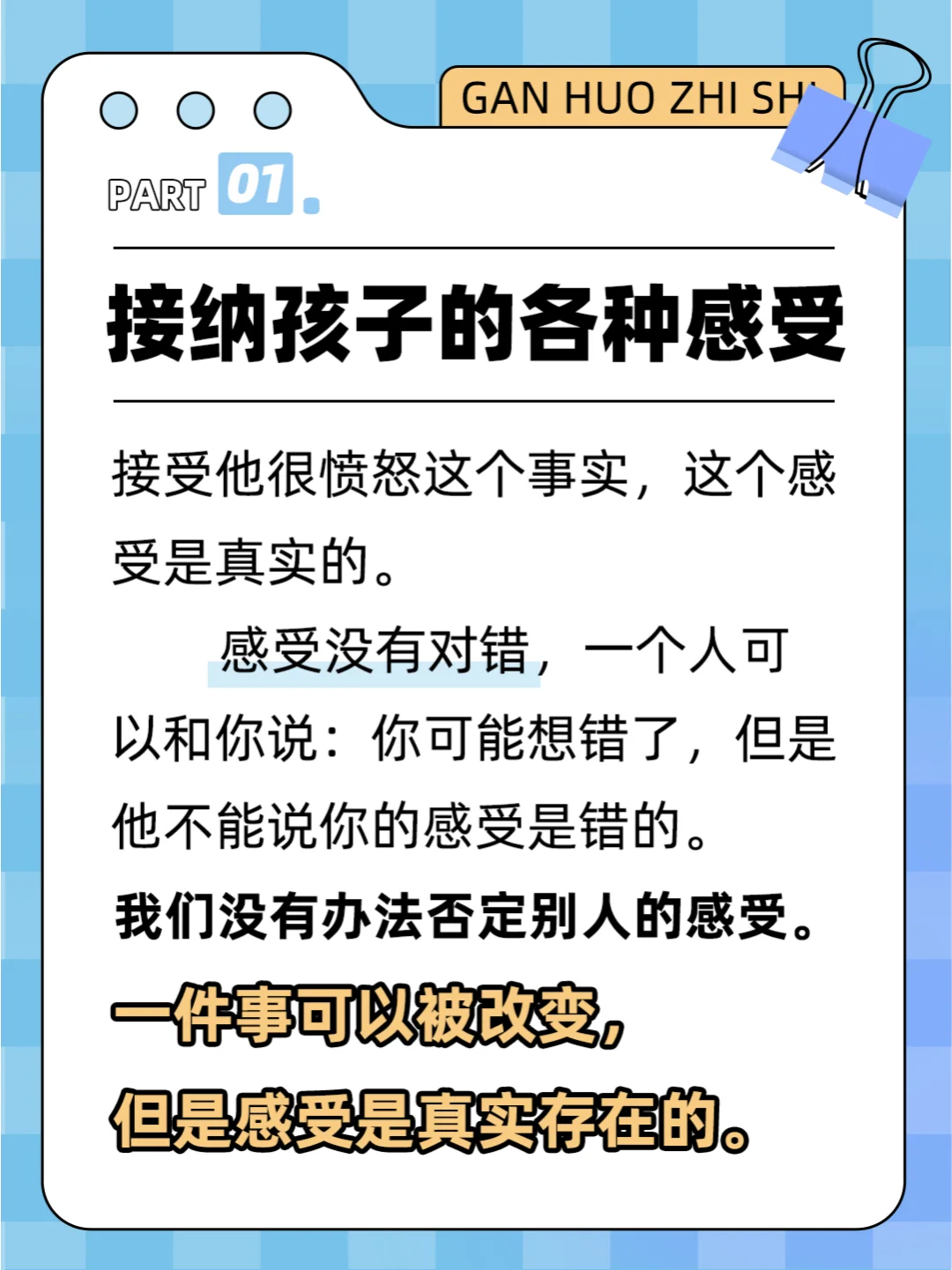 1️⃣接纳孩子的各种感受💖 2️⃣所有的感受都能被接纳,但不是所有的行为都可被接受⚠️ 3️⃣当孩子的感受被接纳,他们就会有力量改变自己的情绪💪 4️⃣接纳感受的同时,要积极地倾听孩子👂