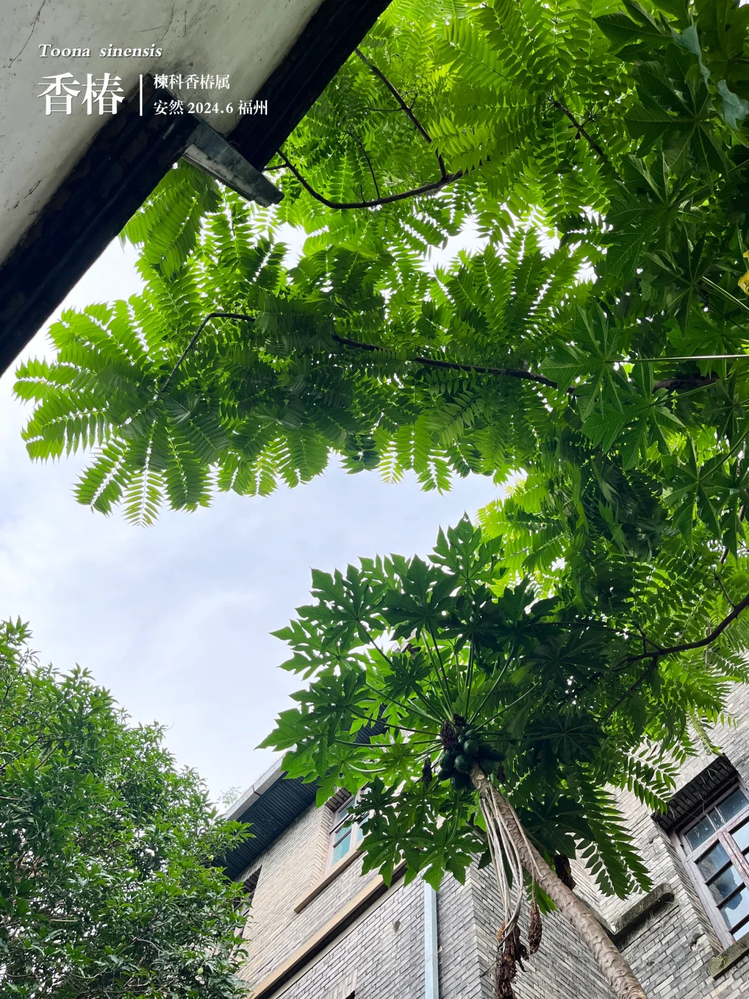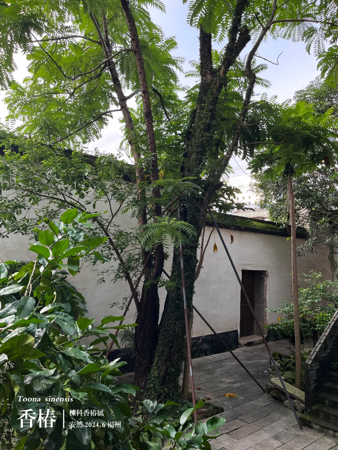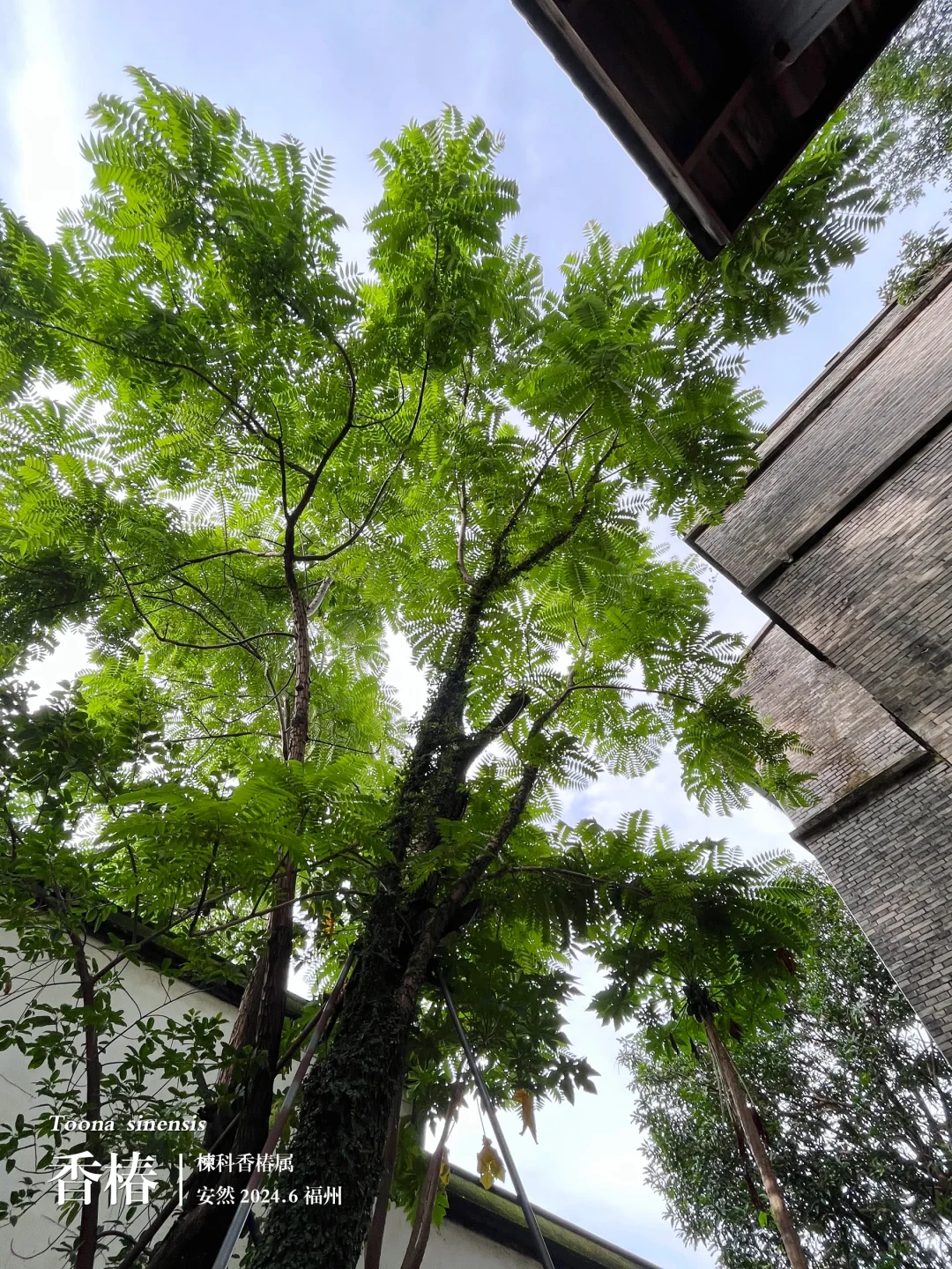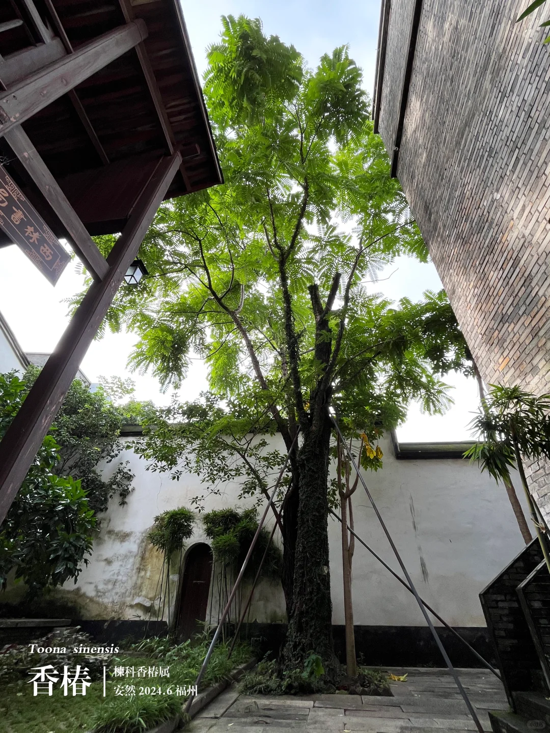 这次在宫巷探访修复后试营业的沈葆桢故居,随后在巷中闲逛,偶然走进巷头的刘宅,徘徊在后院,发现一棵巨大的仿若麻楝的大树,细看铭牌,居然是香椿。兴奋之情溢于言表,赶紧在植物群里告知大家。