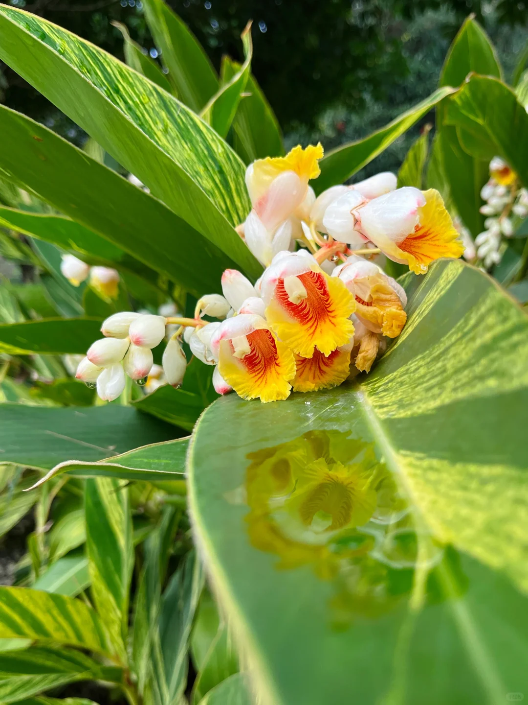 花叶艳山姜与艳山姜的主要区别就是叶子上有金色的条纹。