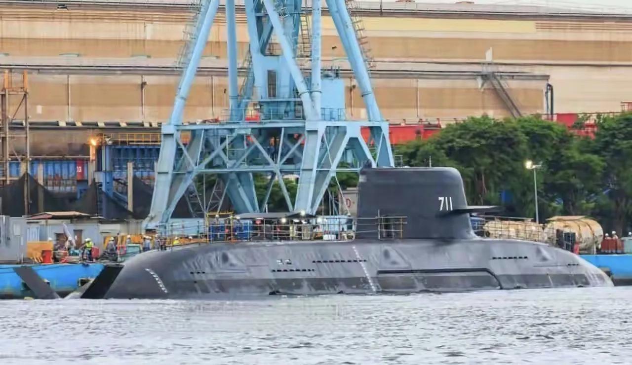 最新一代的国产常规潜艇,711“海鲲”号,在昨天第二次下水并曝光了完整的外形照片,引发了网络热议。 这是中国第一艘采用X型尾舵和单耐压壳体构型的常规潜艇。“海鲲”号常规潜艇采用了填角指挥塔,固定式围壳舵,安装有6个533毫米鱼雷发射管,配备大型共型宽孔径的舷侧阵声呐,主要武器是MK48重型鱼雷,“鱼叉”潜射反舰导弹,或者自航水雷。 第二次下水的“海鲲”号潜艇已经完成了潜望镜和电池系统的安装,计划在9月开始海试和作战系统的测试,如果一切正常,将于2025年末服役。 “海鲲”号常规潜艇的总体技术水平,姑且也算是世界一流吧,除了没有安装AIP(不依赖空气动力系统),其他性能达到西方主流单壳体常规潜艇的水平。 #越南南海外大陆架划界案侵犯我主权#