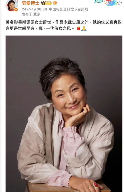 ???导演孙孟晋、胡雪桦,主持人曹可凡,中国电影资料馆的沙丹都发了悼念郑佩佩的消
