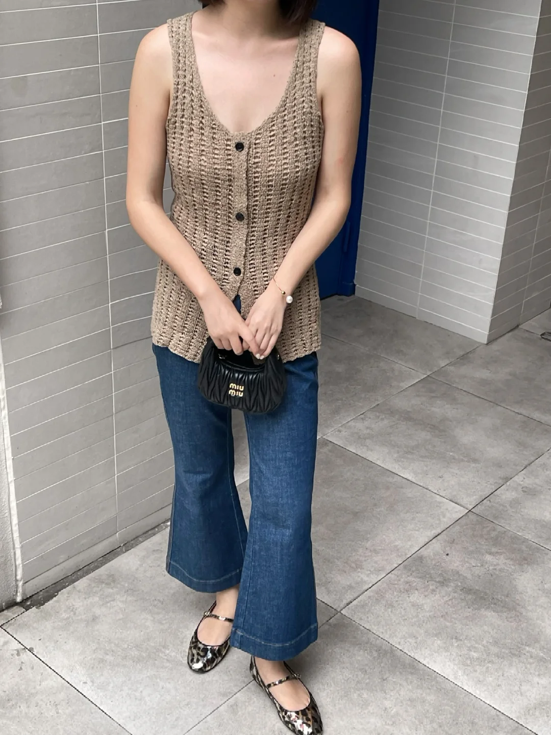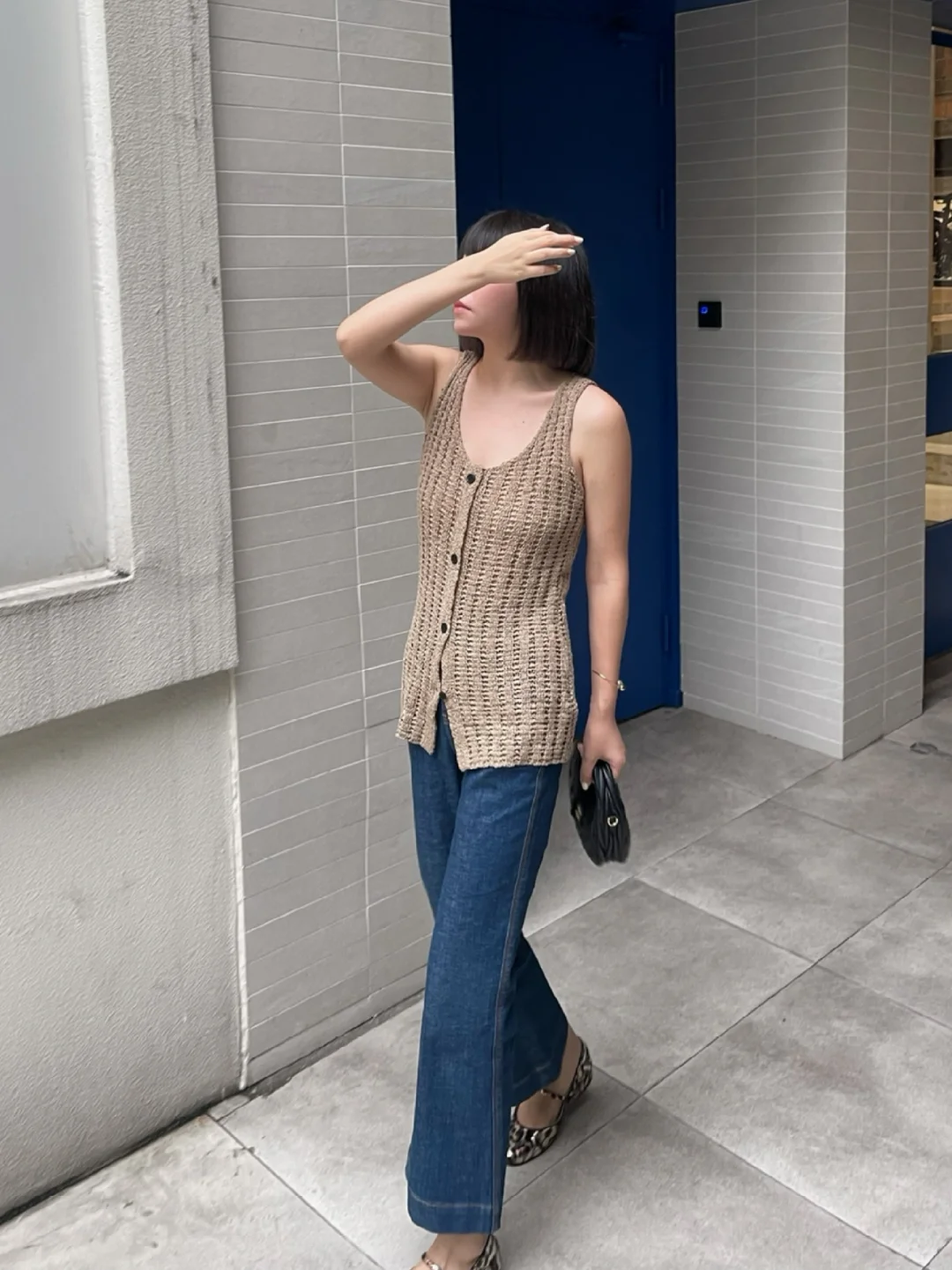 夏天在自然公园里,穿白色背心搭配黄色牛仔裤,妥妥就是甜美少女本女。白色背心清爽又