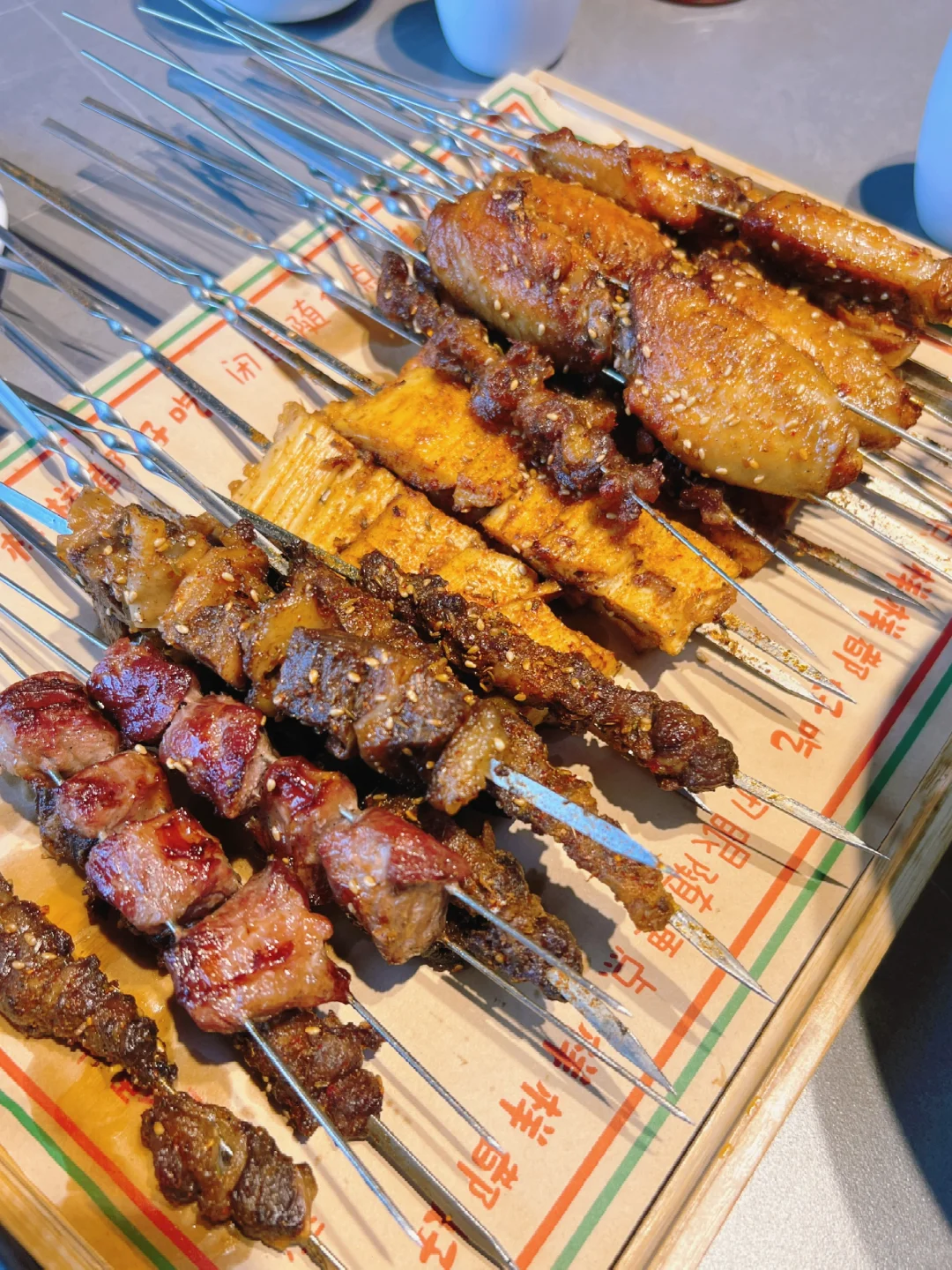 这家烧烤居然四点才开门,想吃个夜宵还得等黄昏,不科学啊!不过宫后夹肉是真的香,大晚上的看这菜单,简直折磨人!