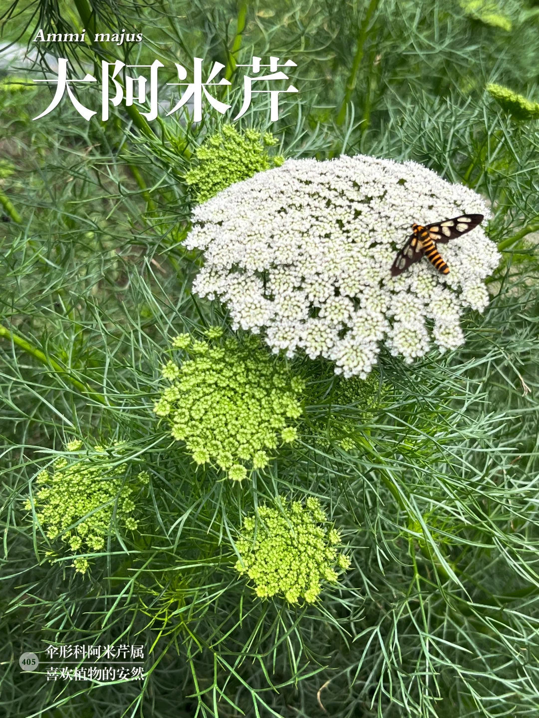 后续查找资料,发现它是原产地中海沿岸的伞形科植物,中文正式名叫“大阿米芹”。它的花型较为紧凑且细腻,密密匝匝的小花聚生在花梗顶部,仿佛一把镂空的小伞。