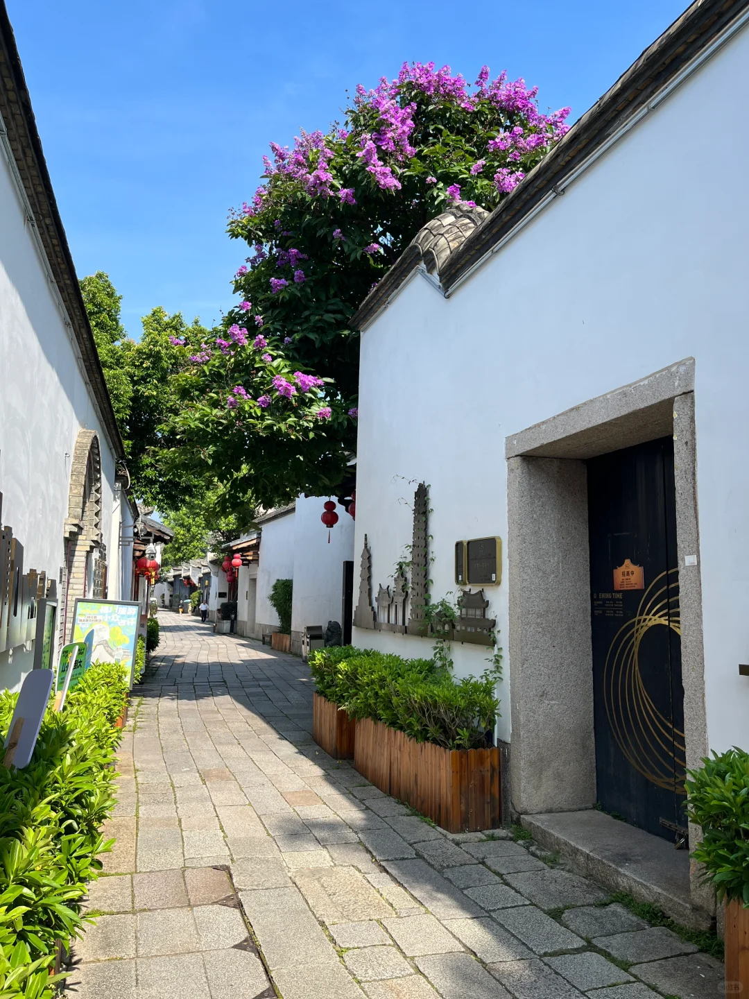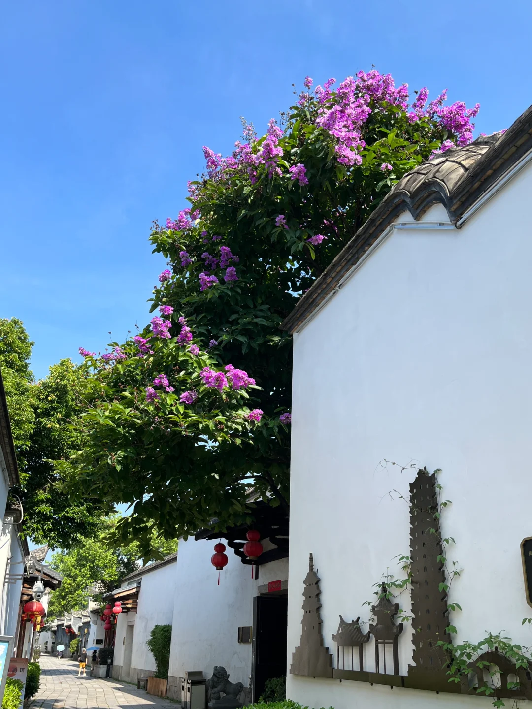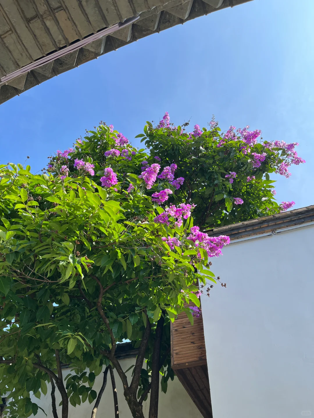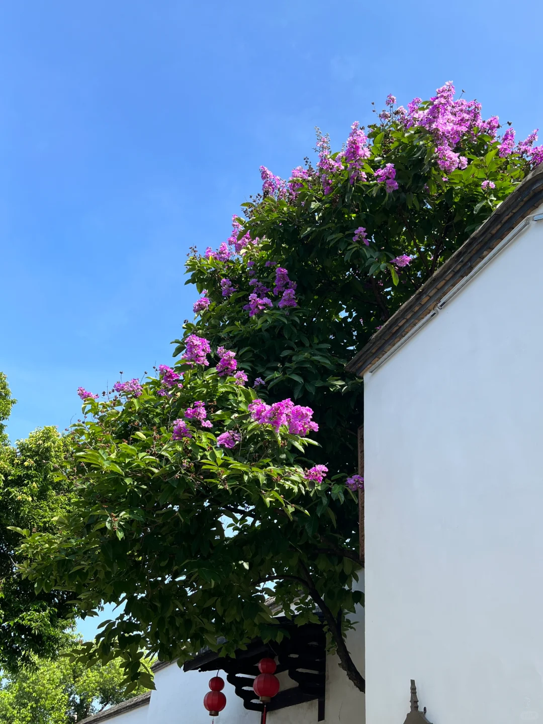 大花紫薇悄然在坊巷里盛开,一抹紫色让人心醉。 大花紫薇是千屈菜科紫薇属的乔木,别名大叶紫薇。它原产亚洲热带地区,于十九世纪末引入中国台湾。在中国广东、广西、福建的栽培,是作为观赏花木有意引入,至迟20世纪50年代引入。 它是一种非常美丽的观花乔木,枝叶茂密,开花华丽,树姿飘逸。夏季开花,为夏季代表花之一。 黄巷这棵大花紫薇非常艳丽,一串串紫花挂在枝头,在白墙黛瓦的映衬下,非常漂亮,远远就被迷倒。不愧于它的拉丁种名speciosa,即“美丽”。