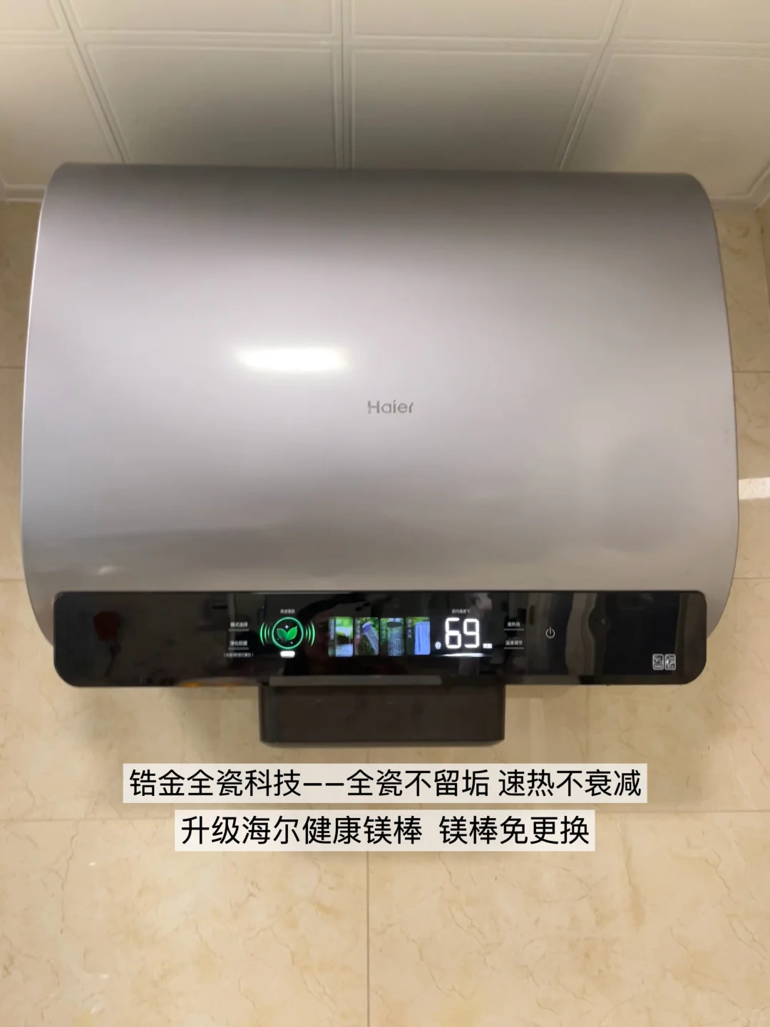 这个热水器的品质还是升级的锆金全瓷科技,锆金加热管全瓷覆盖,完全不会附着水垢,搭载升级的海尔健康镁棒,不仅省去了售后更换镁棒的烦扰,品质保障用起来也更安心了。