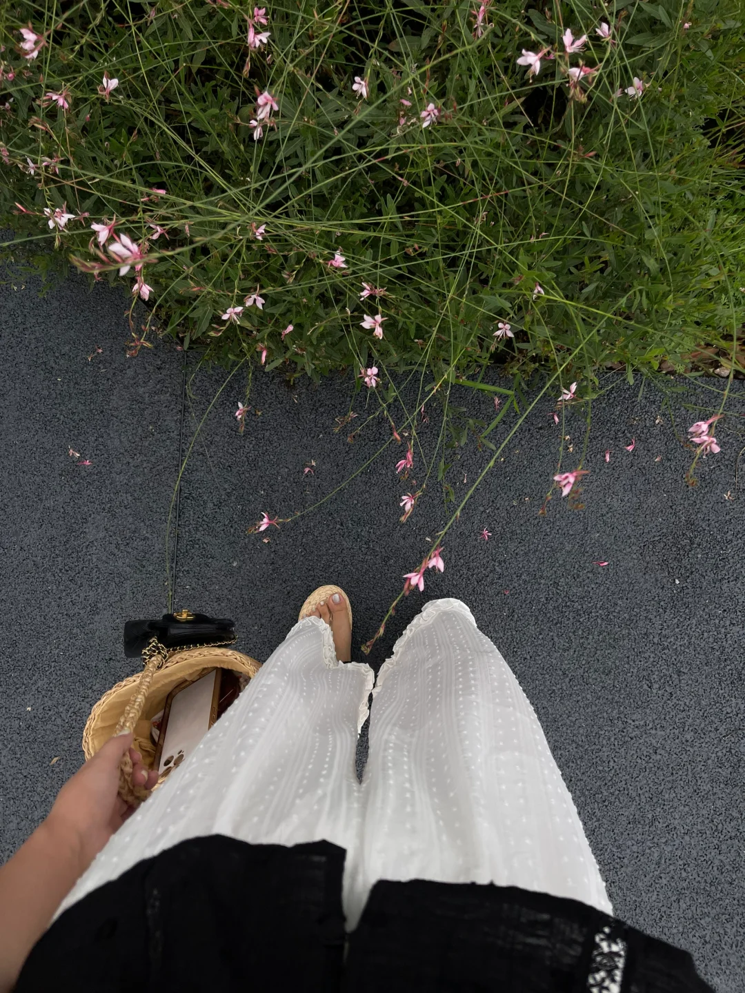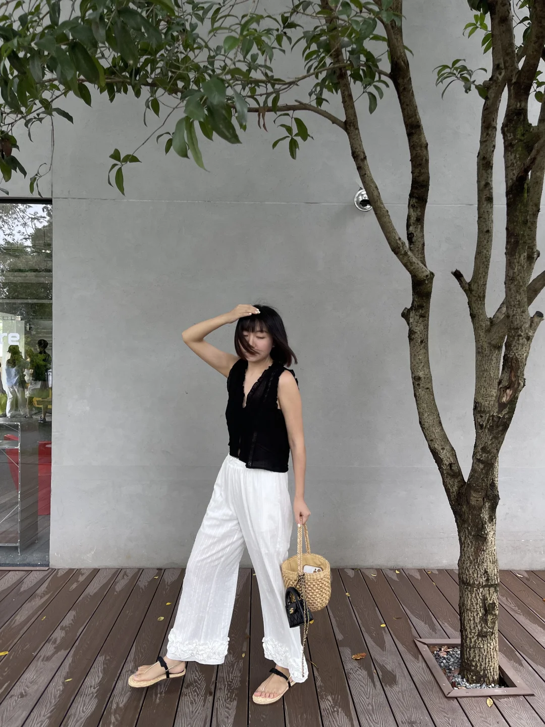夏天在自然公园里,穿白色背心搭配黄色牛仔裤,妥妥就是甜美少女本女。白色背心清爽又