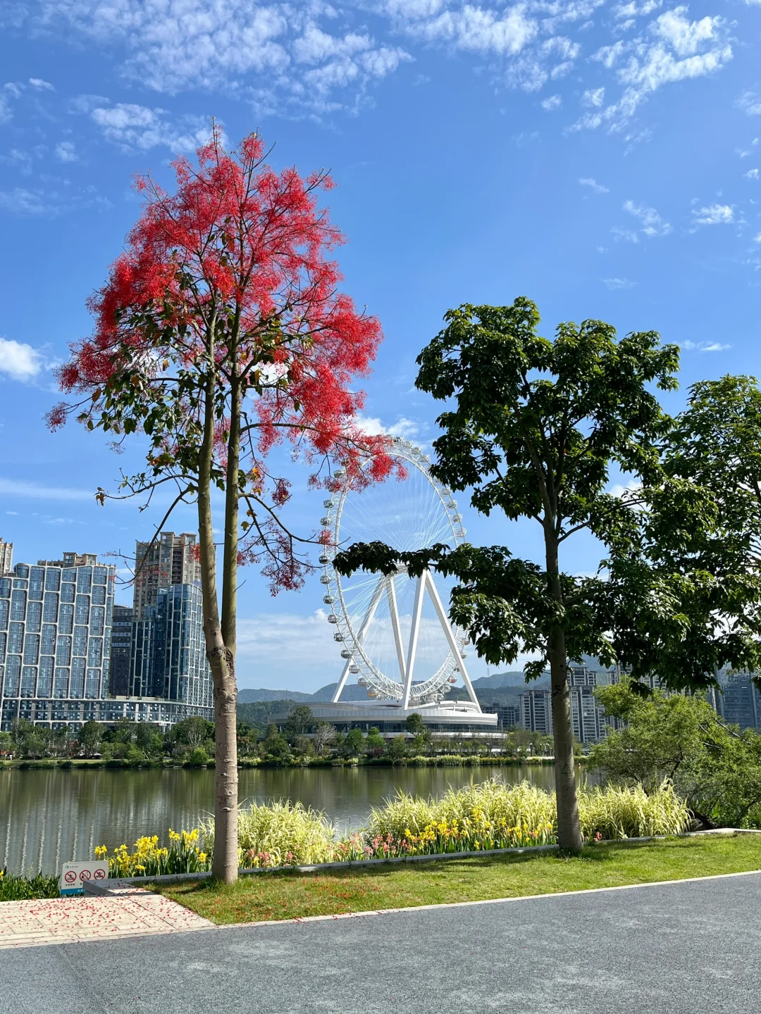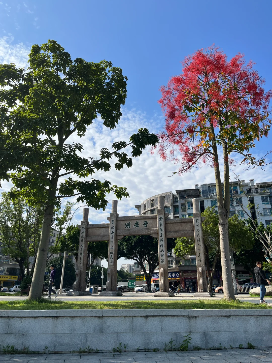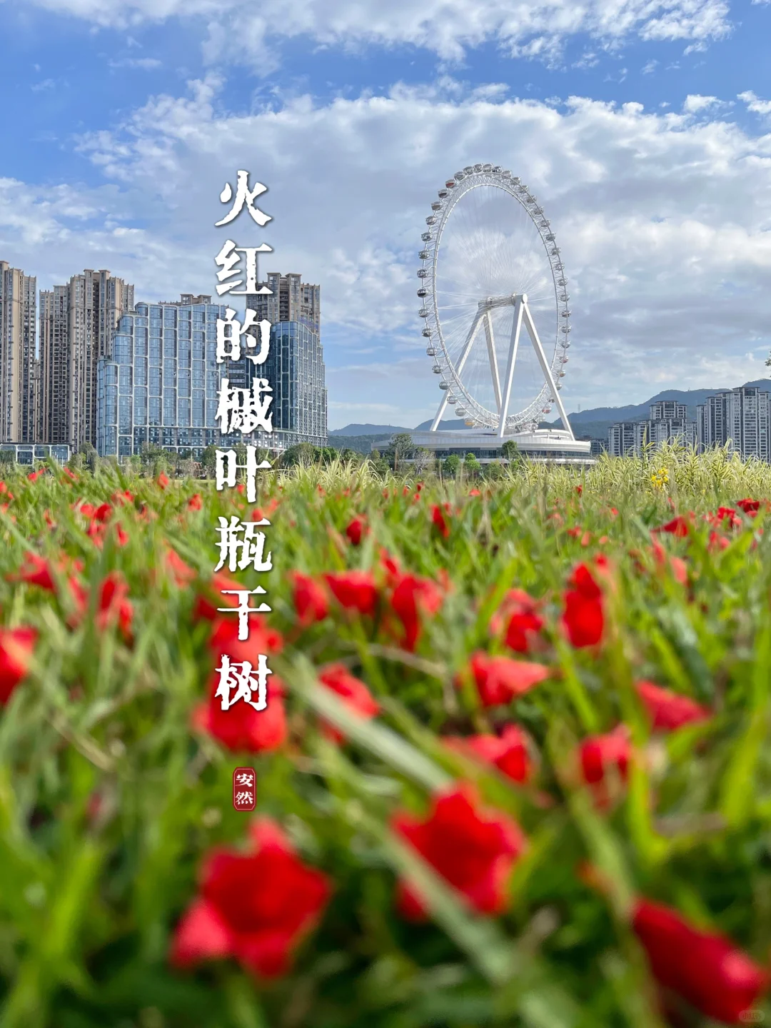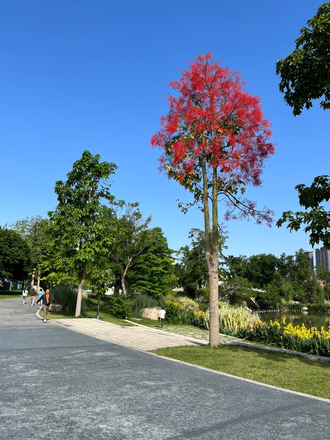 浪漫生活的记录者 槭叶瓶干树又被称为澳洲火焰木,被誉为“世界上zui美丽的开花树种之一”。 它甚是壮美。树形高大挺拔,叶子翠绿油亮、花色红艳,小而密集。 这一段时间,晋安湖公园的澳洲火焰木风风火火地开放了。 远观大树,满树红火,仿佛被泼了亮红色的漆,非常醒目。 “火焰木”这个名字,果然名不虚传!!!