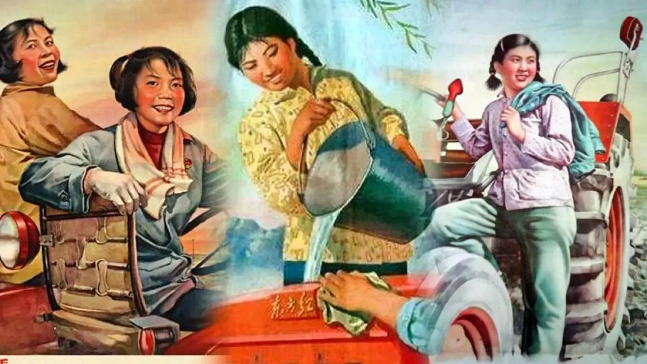 在六十年前,我们中国最红的车模。 在1962年发行的第三版人民币的一元纸币上,印着一位驾驶拖拉机的女孩,她就是新中国第一位女拖拉机手梁军,曾在1959年驾驶国产首批“东方红-54”拖拉机。 五六十年前的女性宣传形象,都是红光满面、体态丰盈、健康向上,真是个充满建设热情的时代。 那时候,妇女能顶半边天,新中国的妇女解放事业是划时代的巨大成就。