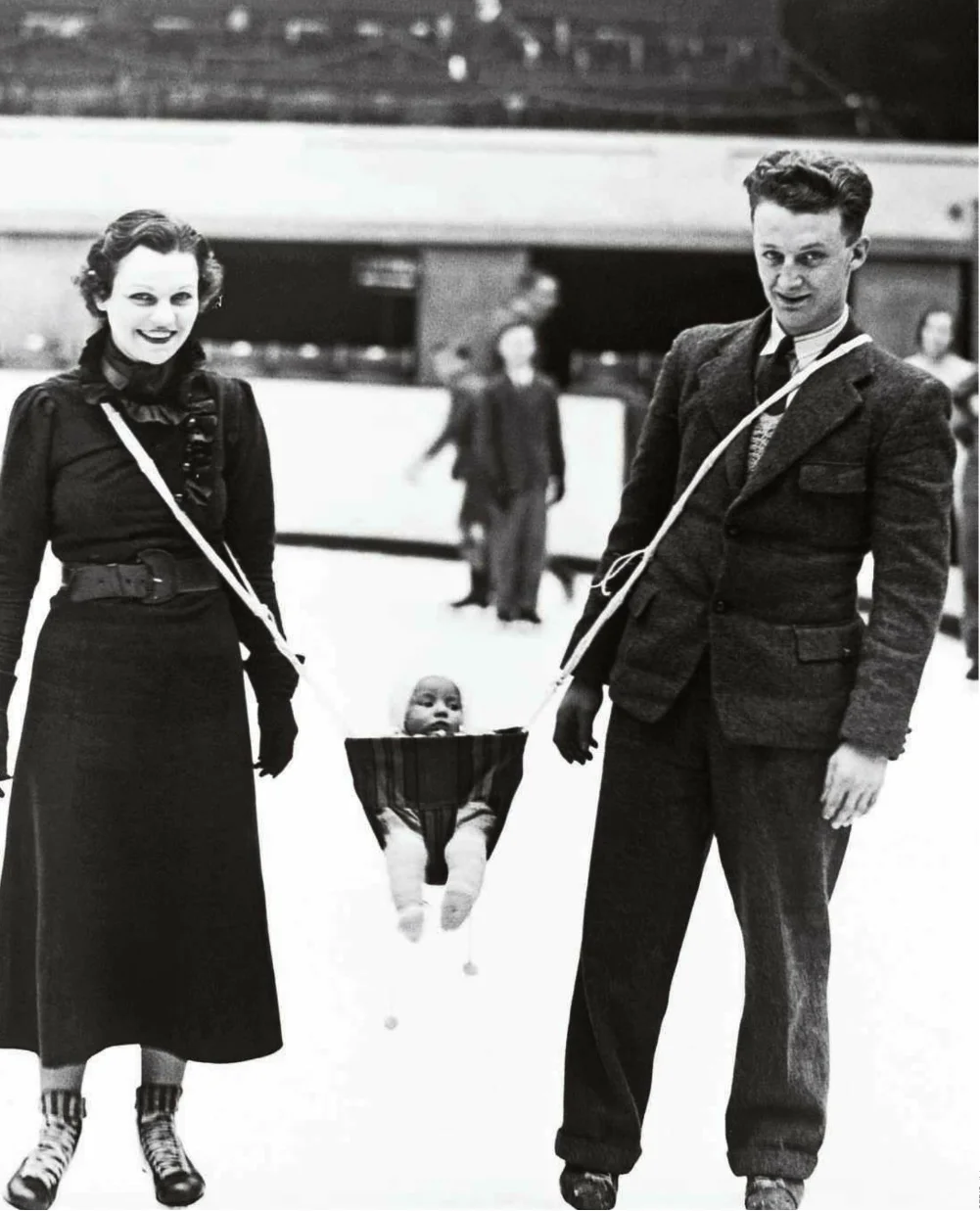 1937年,冰上曲棍球队的队员杰克·米尔福特发明了一种承载装置,他和妻子滑冰时可以把孩子放在承载装置,让孩子也享受到“滑冰”的乐趣