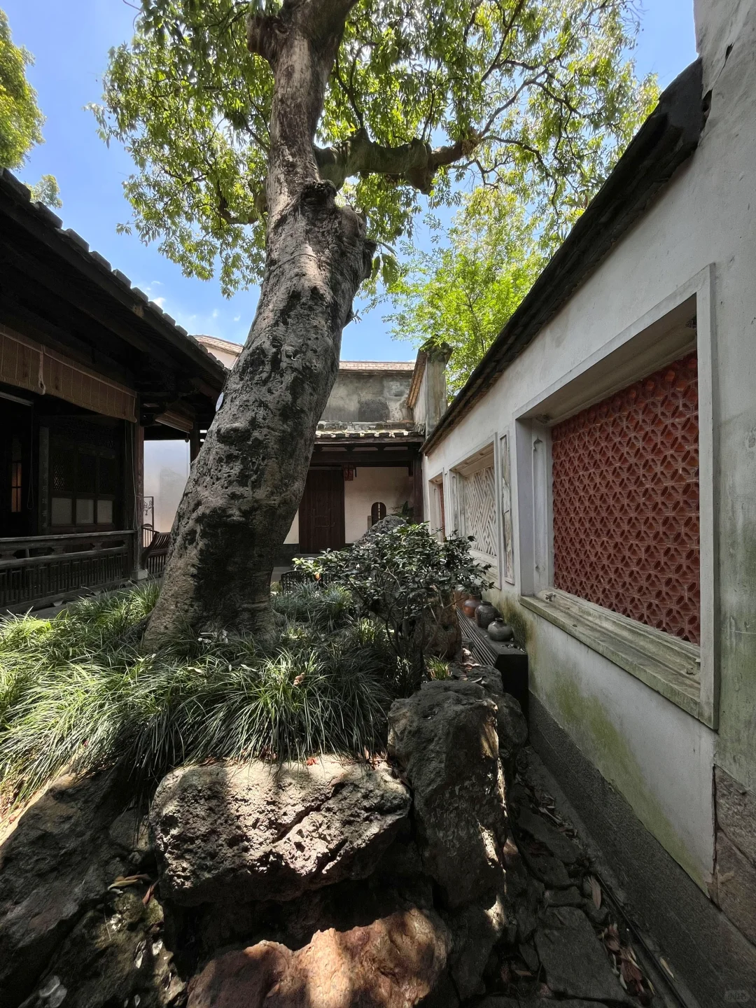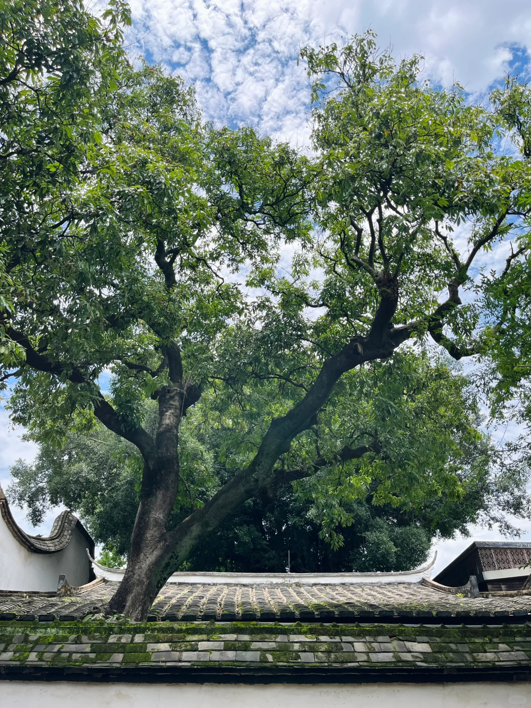 每每走在园中,看到这棵独立于园墙一角的古荔枝,看着它枝繁叶茂,高耸出院墙的模样,就想起归有光的名篇《项脊轩志》:“庭有枇杷树,余妻死之年所手植也,今已亭亭如盖矣”。