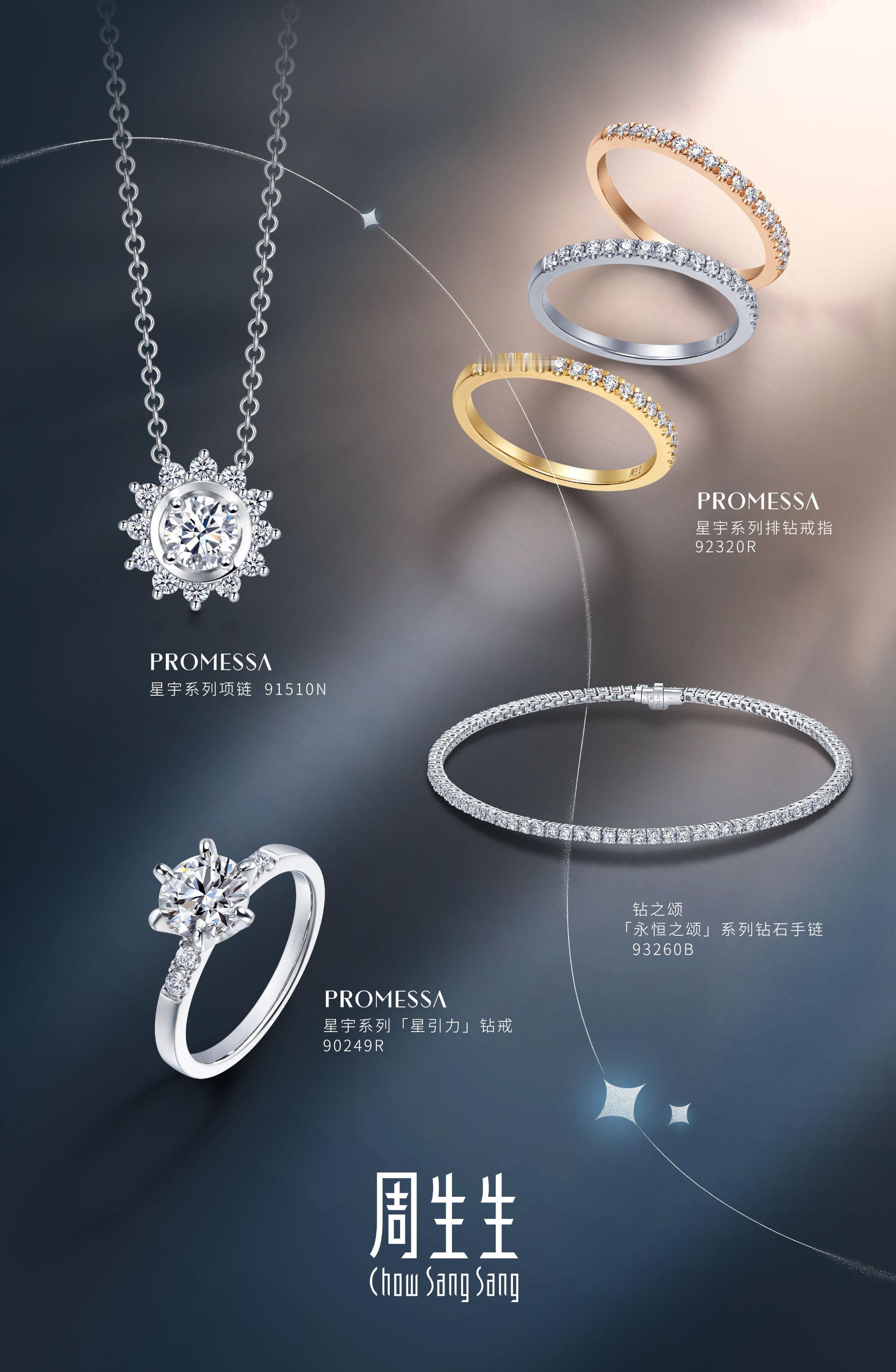 穿梭音符间,熠熠似星辰,单依纯佩戴周生生PROMESSA星宇系列「星引力」钻戒拍摄大片,指间的星宇系列「星引力」钻戒,闪耀着天然钻石的光芒,如星光般绽放