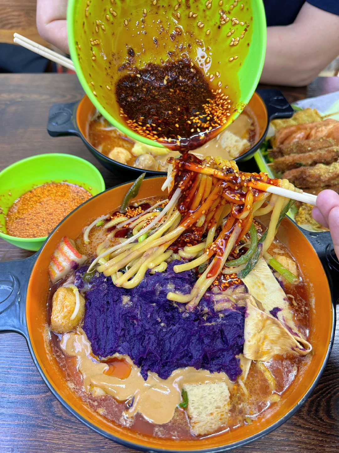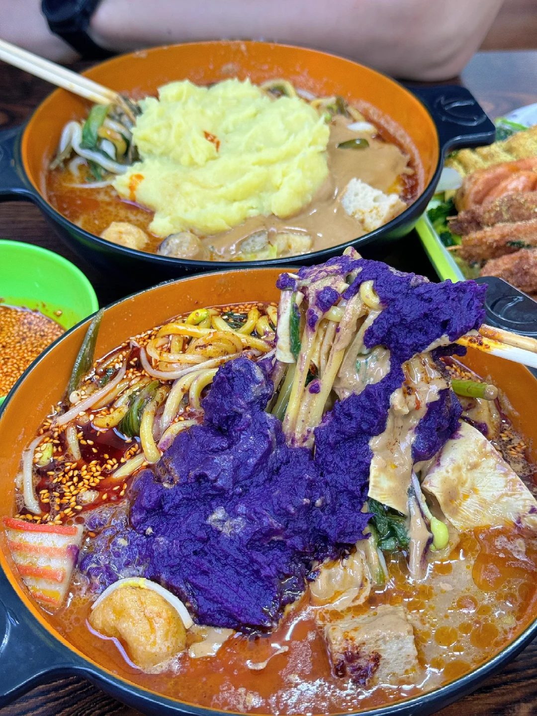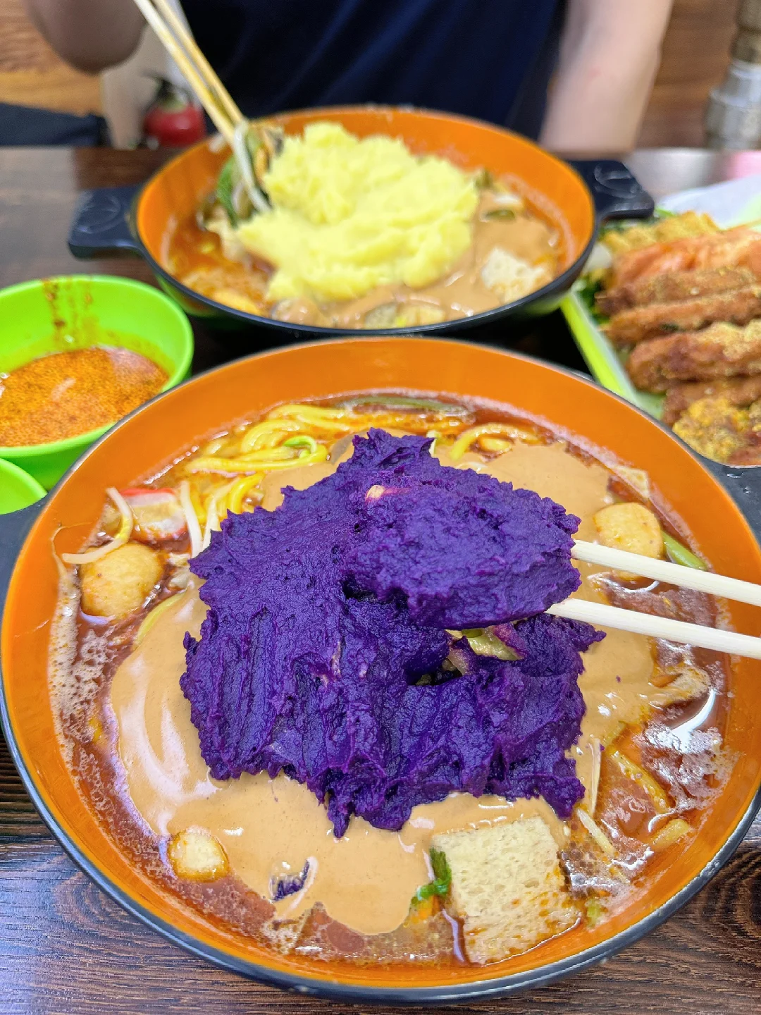 这麻辣烫真有那么神?紫薯泥加黏糊糊,听起来怪怪的,敢不敢试试看呢?