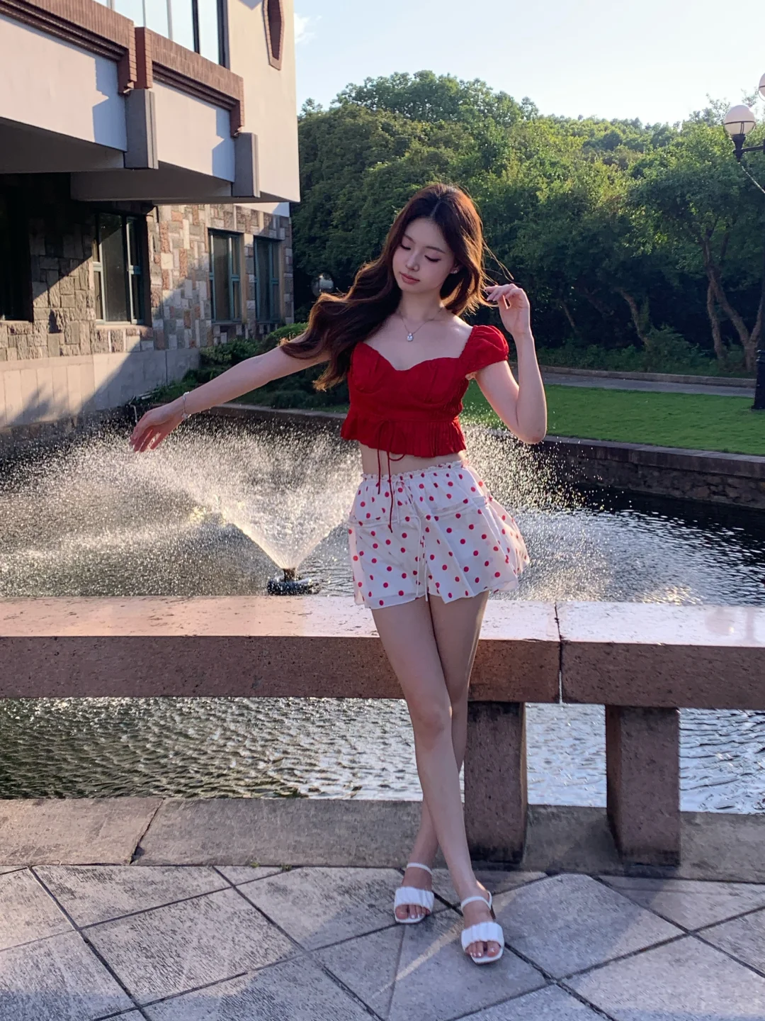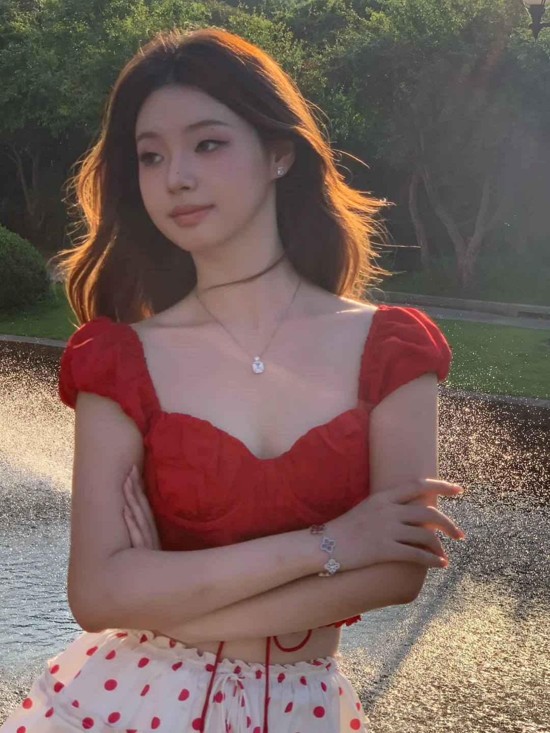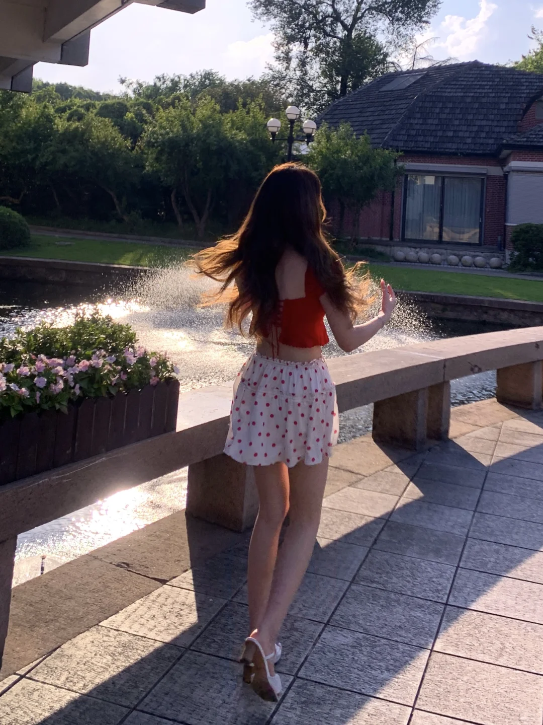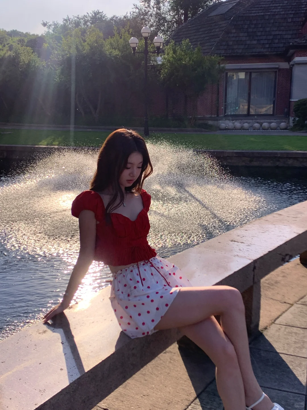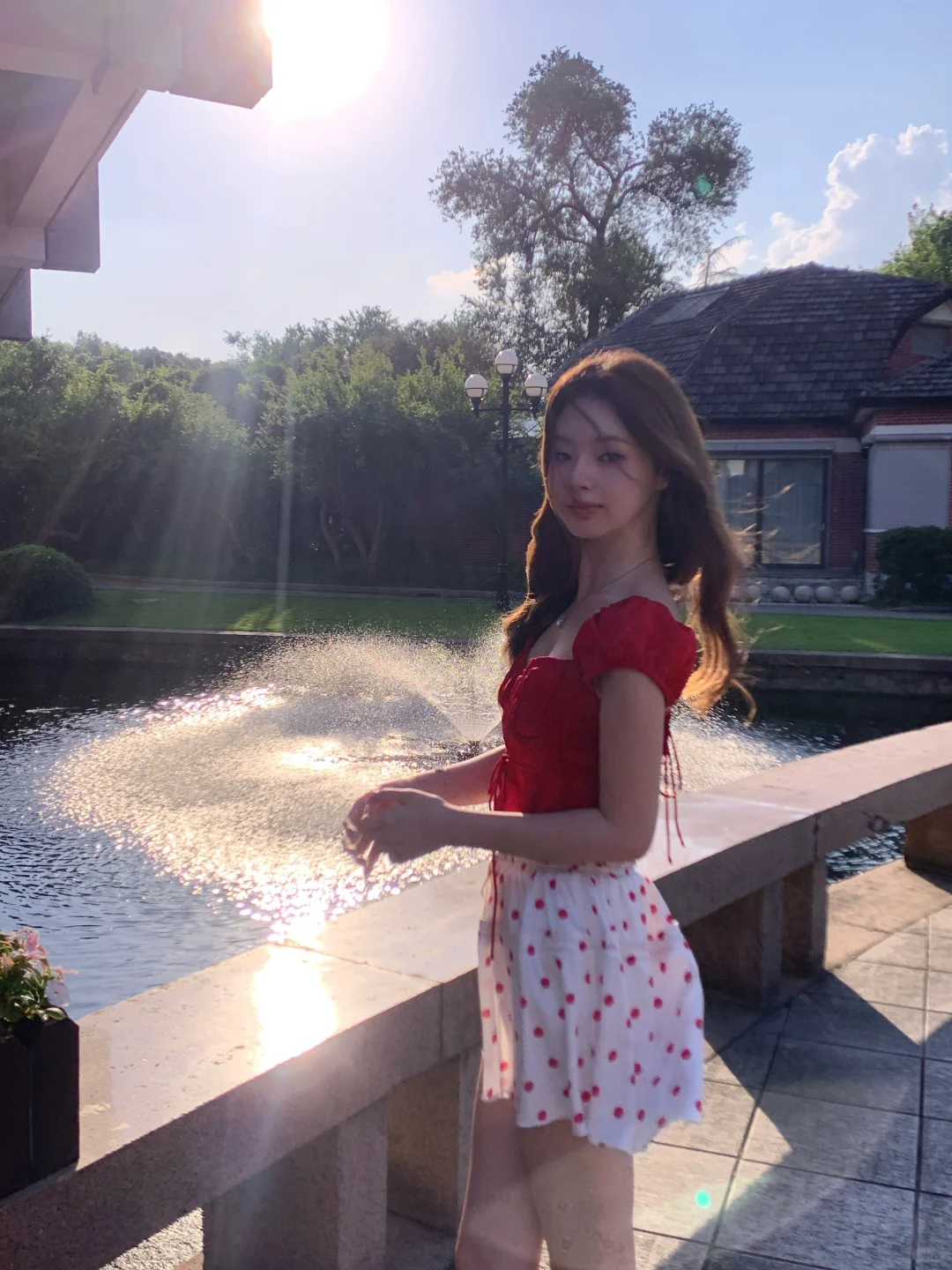 昨天去西郊宾馆拍照咯 真的好热呀但是在夕阳的喷泉旁拍到了超美逆光~