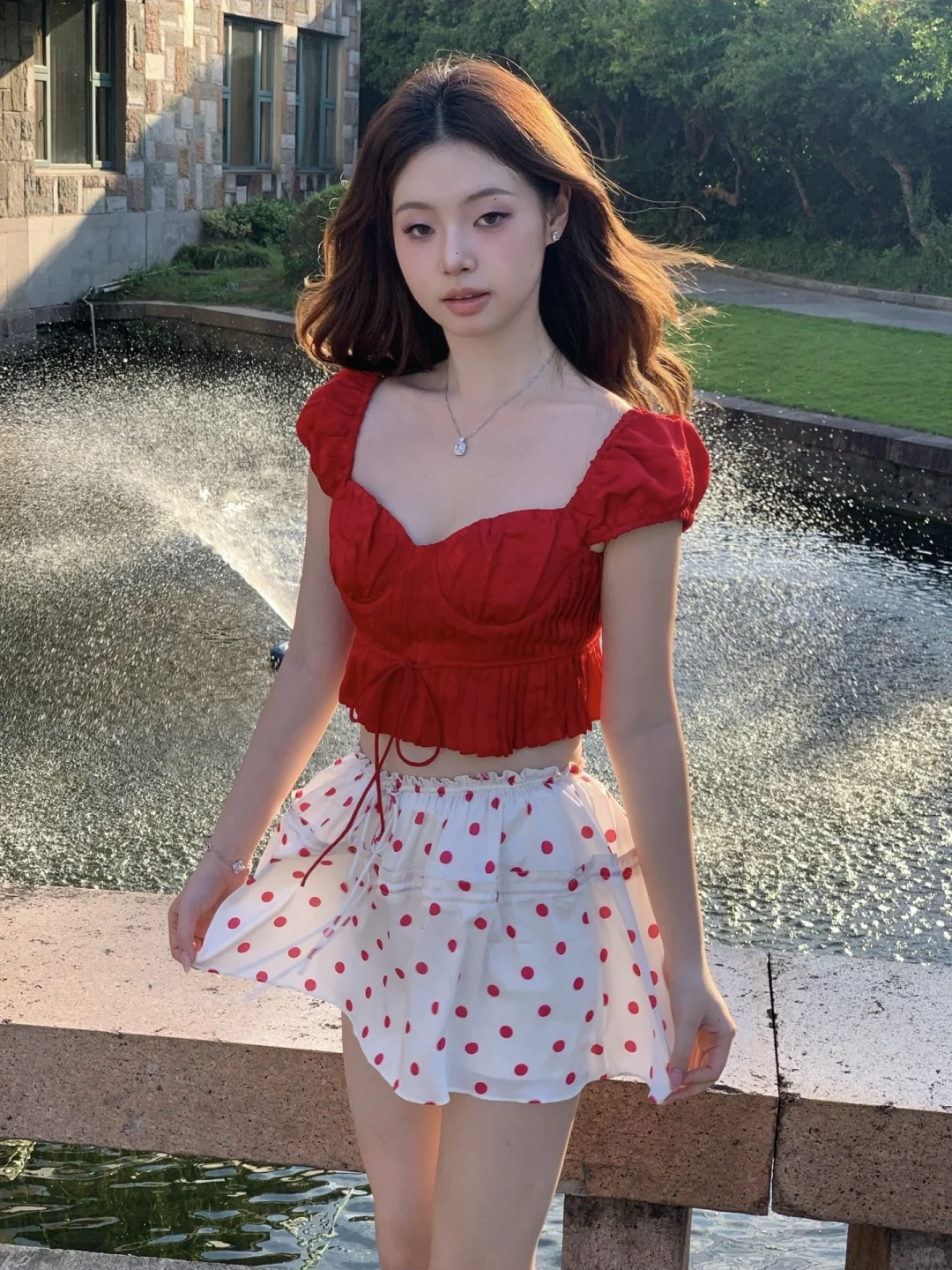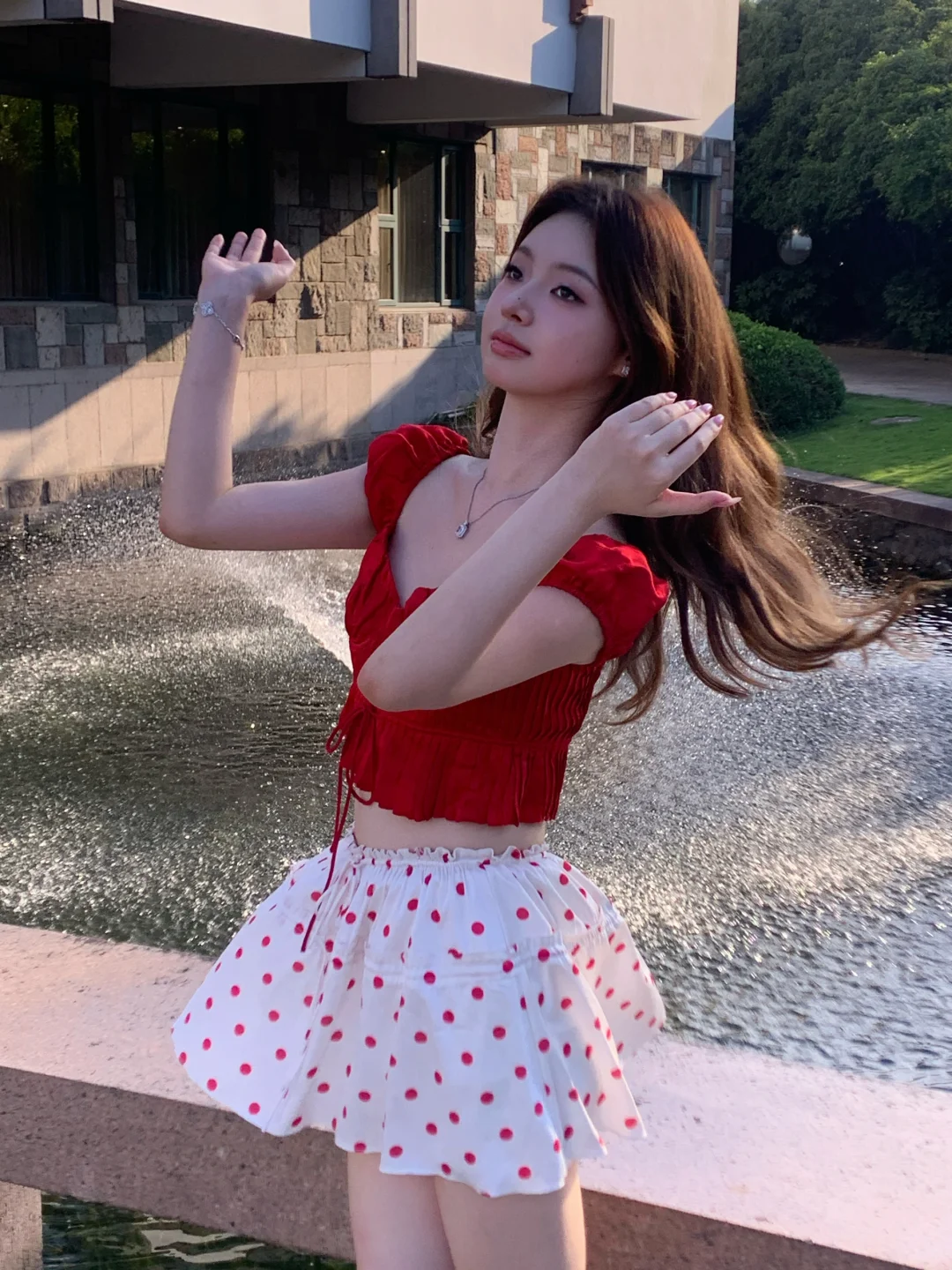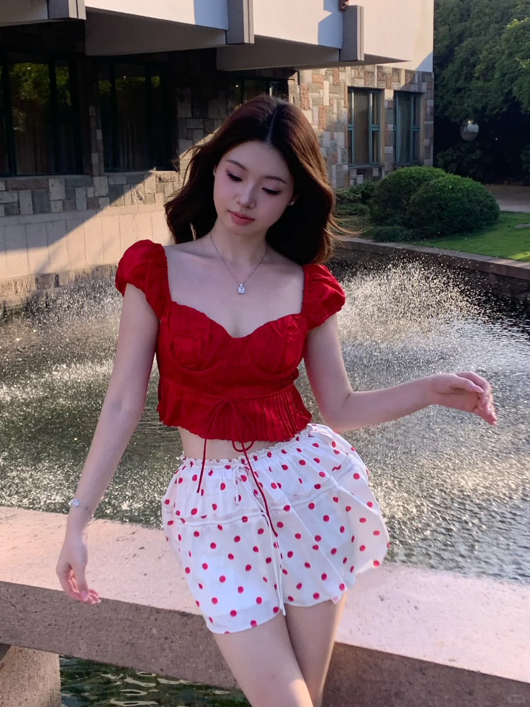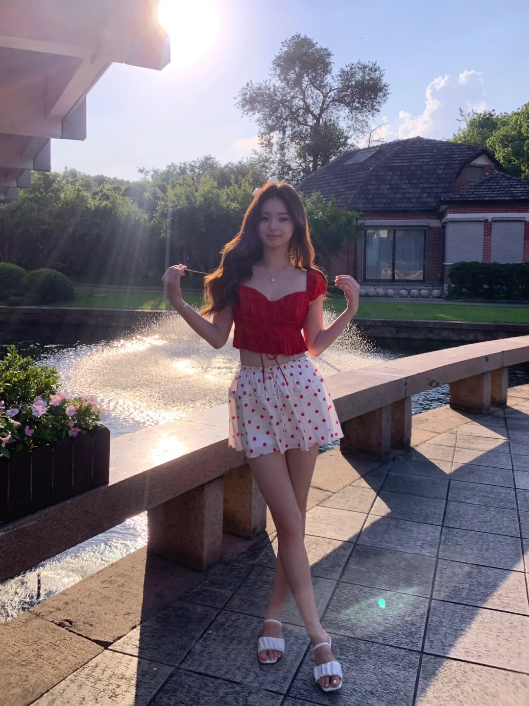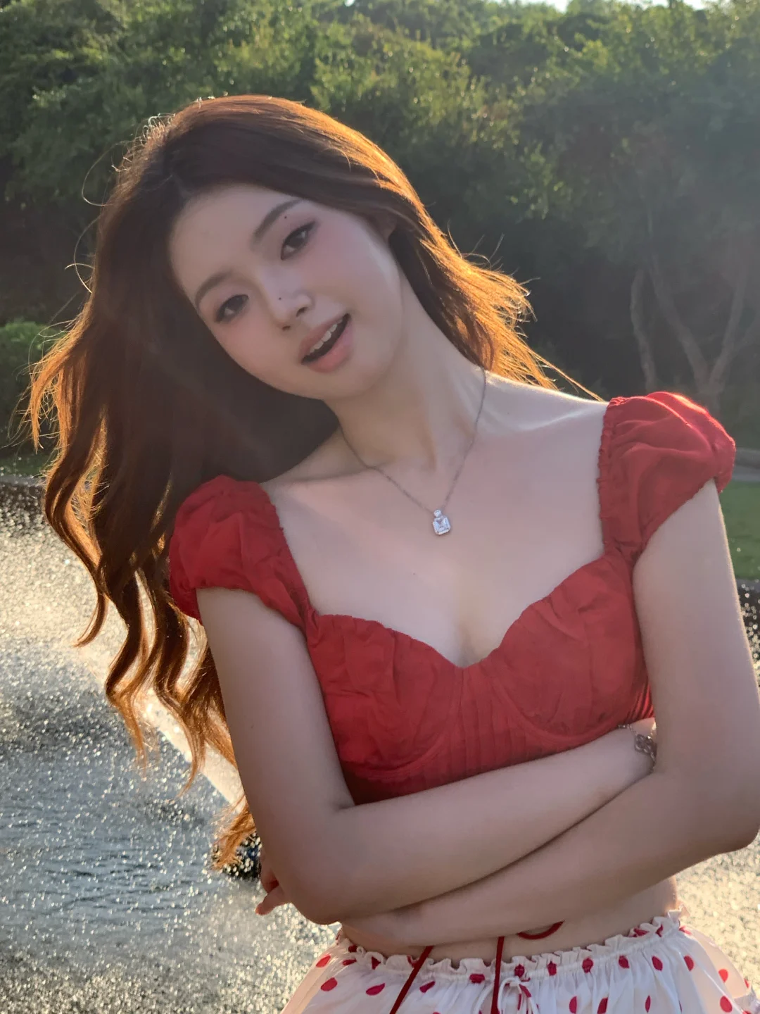 昨天去西郊宾馆拍照咯 真的好热呀但是在夕阳的喷泉旁拍到了超美逆光~