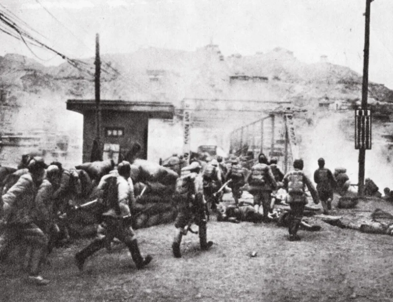 图3:兰州战役中,解放军战士正在抢占兰州黄河铁桥。1949年8月25日拂晓,解放军第一野战军发起兰州战役。26日午夜,2兵团第7师抢占黄河铁桥,切断了敌军退路,为全歼敌兰州守军创造了条件