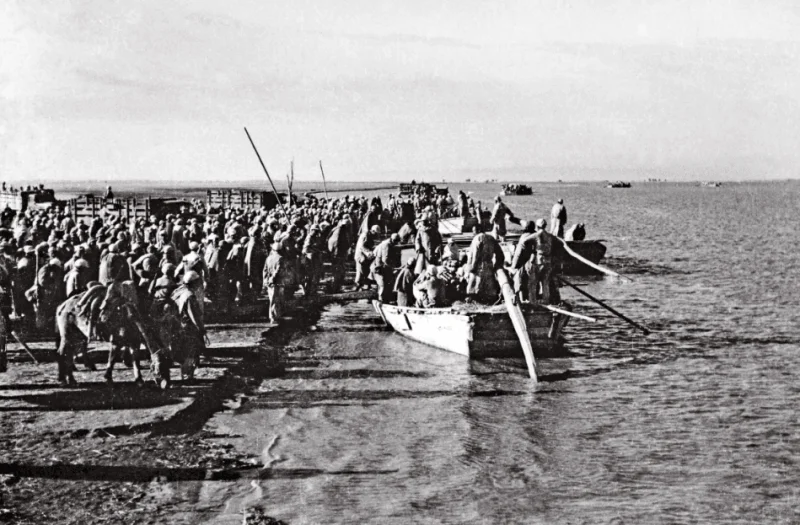 图9:1949年9月,解放军从吴忠县(现吴忠市)仁存渡口渡过黄河,向银川挺进。9月1日,马鸿逵逃往重庆,临走前将宁夏军政大权交给次子马敦静。19日,解放军十九兵团对银川发动总攻,23日银川解放