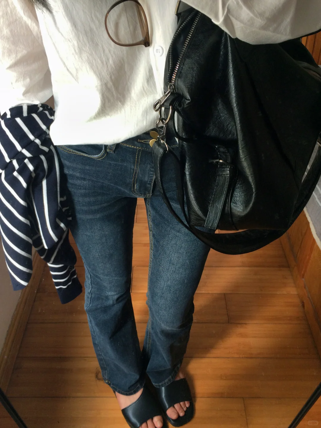 透但是很舒服,搭配了一件复古色牛仔裤,很修身那种,显得很好看!!