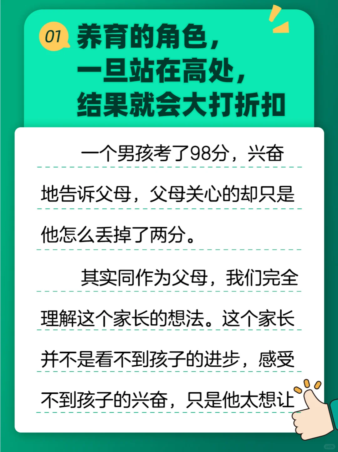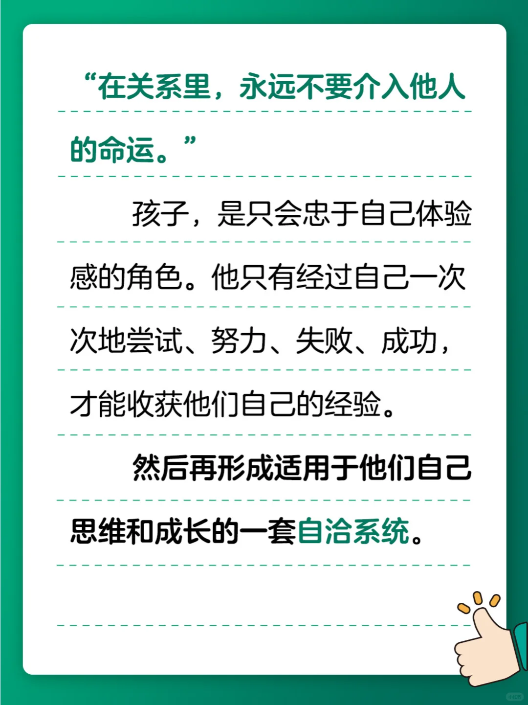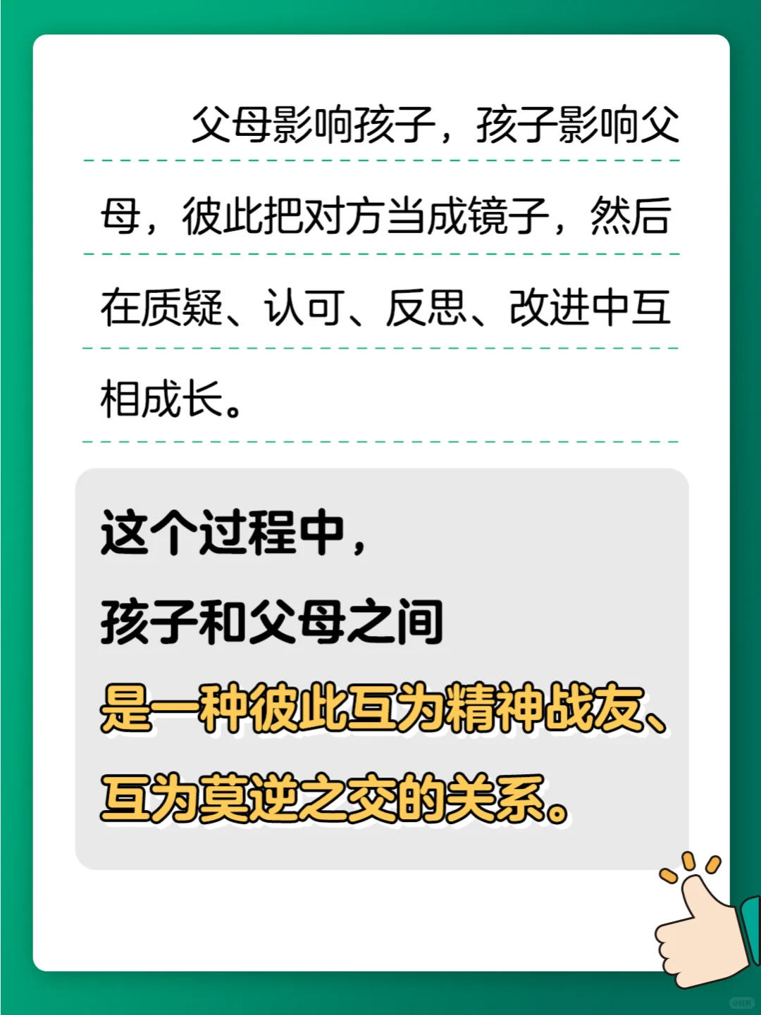 1️⃣养育的角色,一旦站在高处,结果就会大打折扣👩👦👦⛰️ 2️⃣孩子需要自己的体验,而不是父母的经验🧒🌈 3️⃣教育是相互的,一起成长才能共享未来👨👩👧👦🌱🌟
