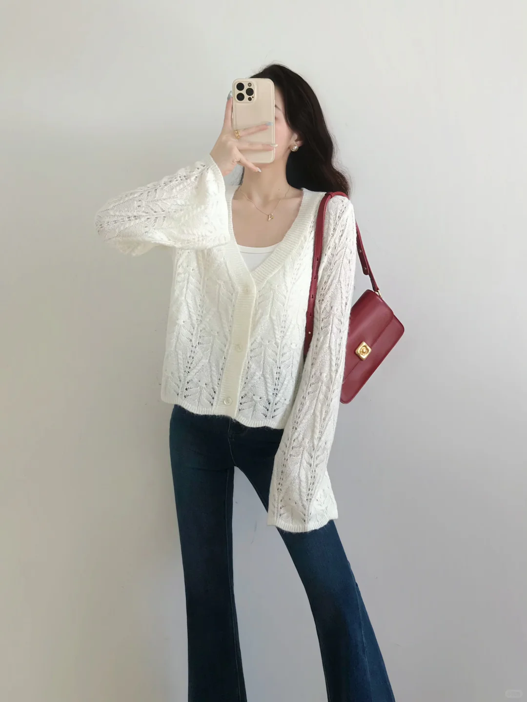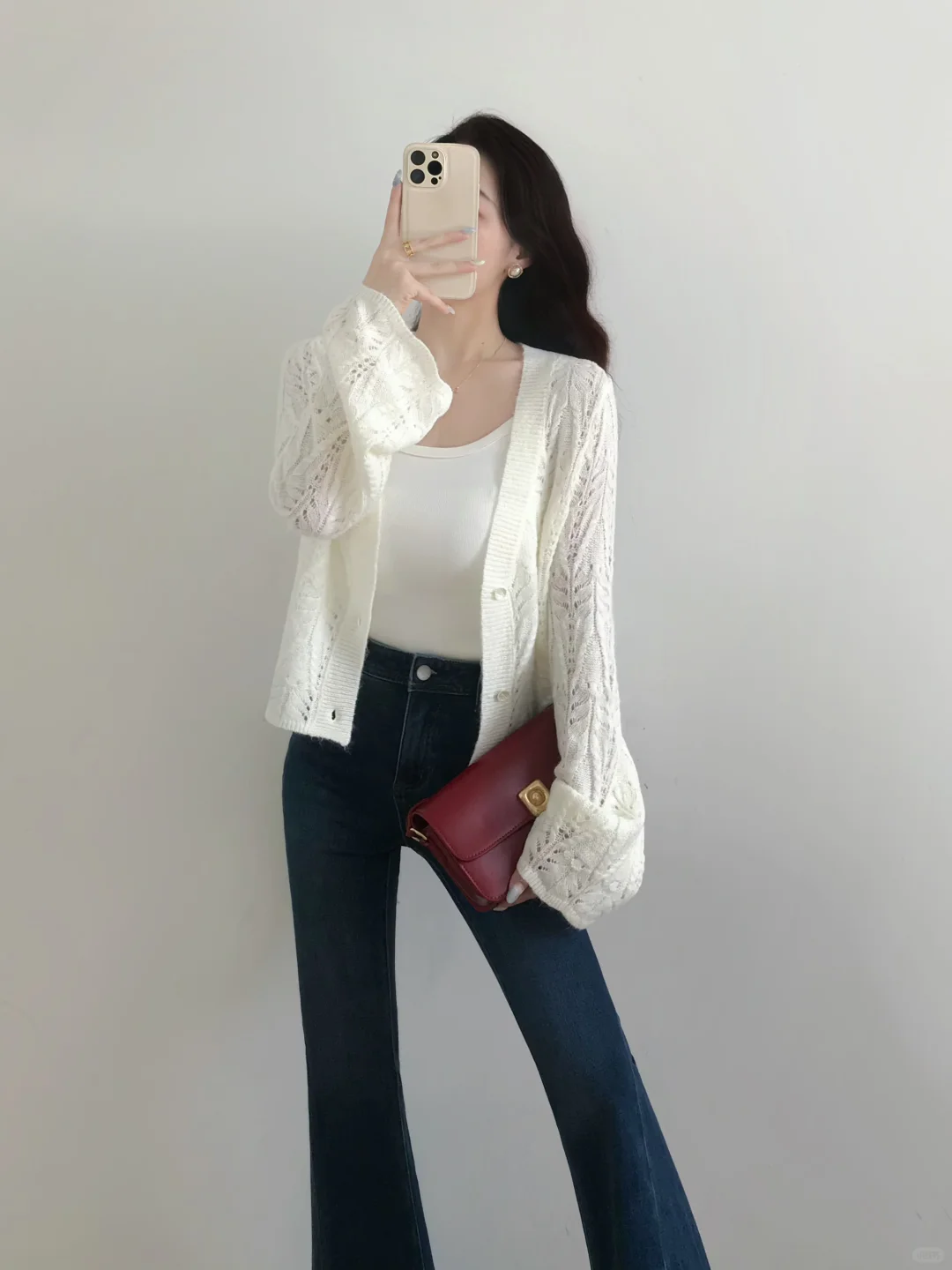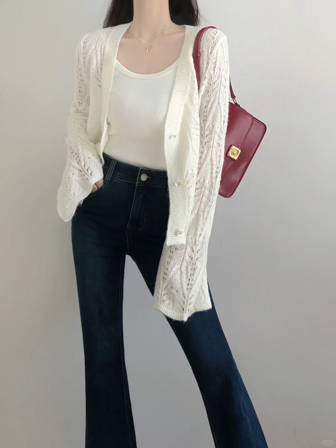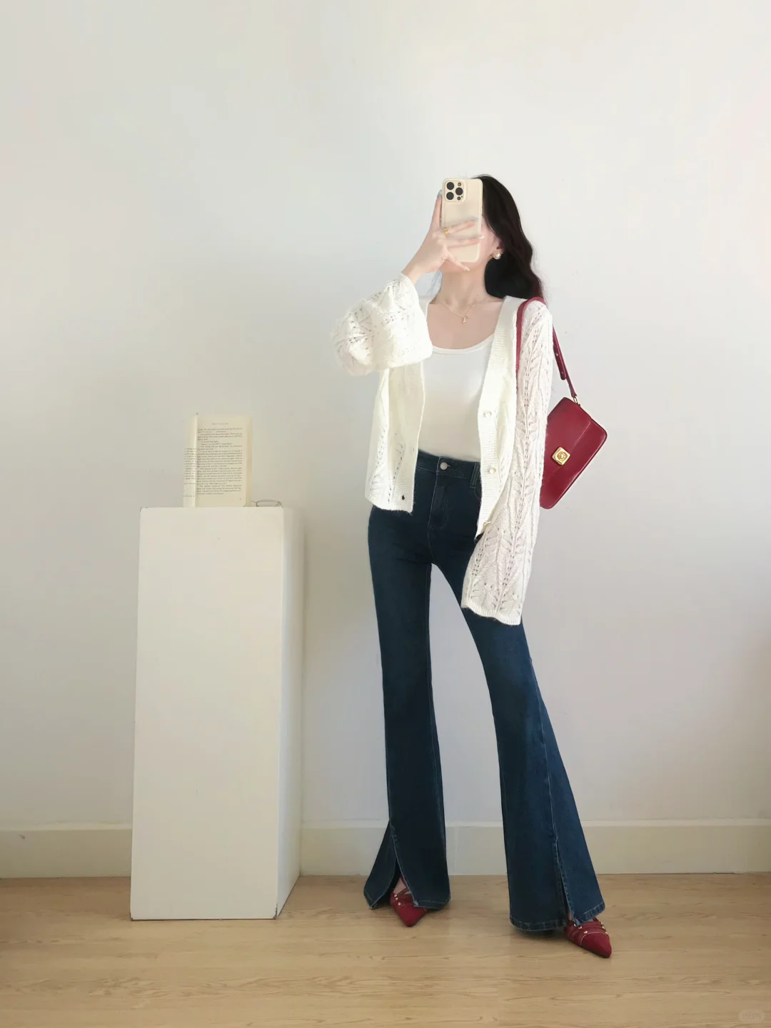 刚从泰国度假回来,发现广东比曼谷还热!! 想过秋天了啊!! 一组小个子法式通勤look奉上 法式针织开衫加一条开叉微喇牛仔裤 简单就很漂亮啊!!