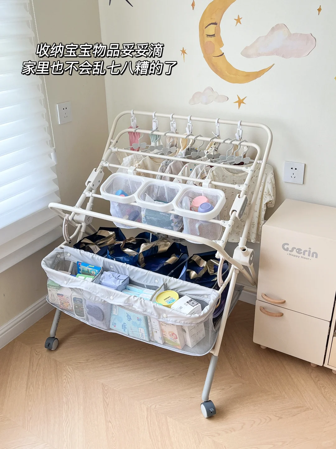 宝宝大了,改造成置物架收纳宝宝物品妥妥滴,能挂衣服还能放囤货,家里也不会乱七八糟的了