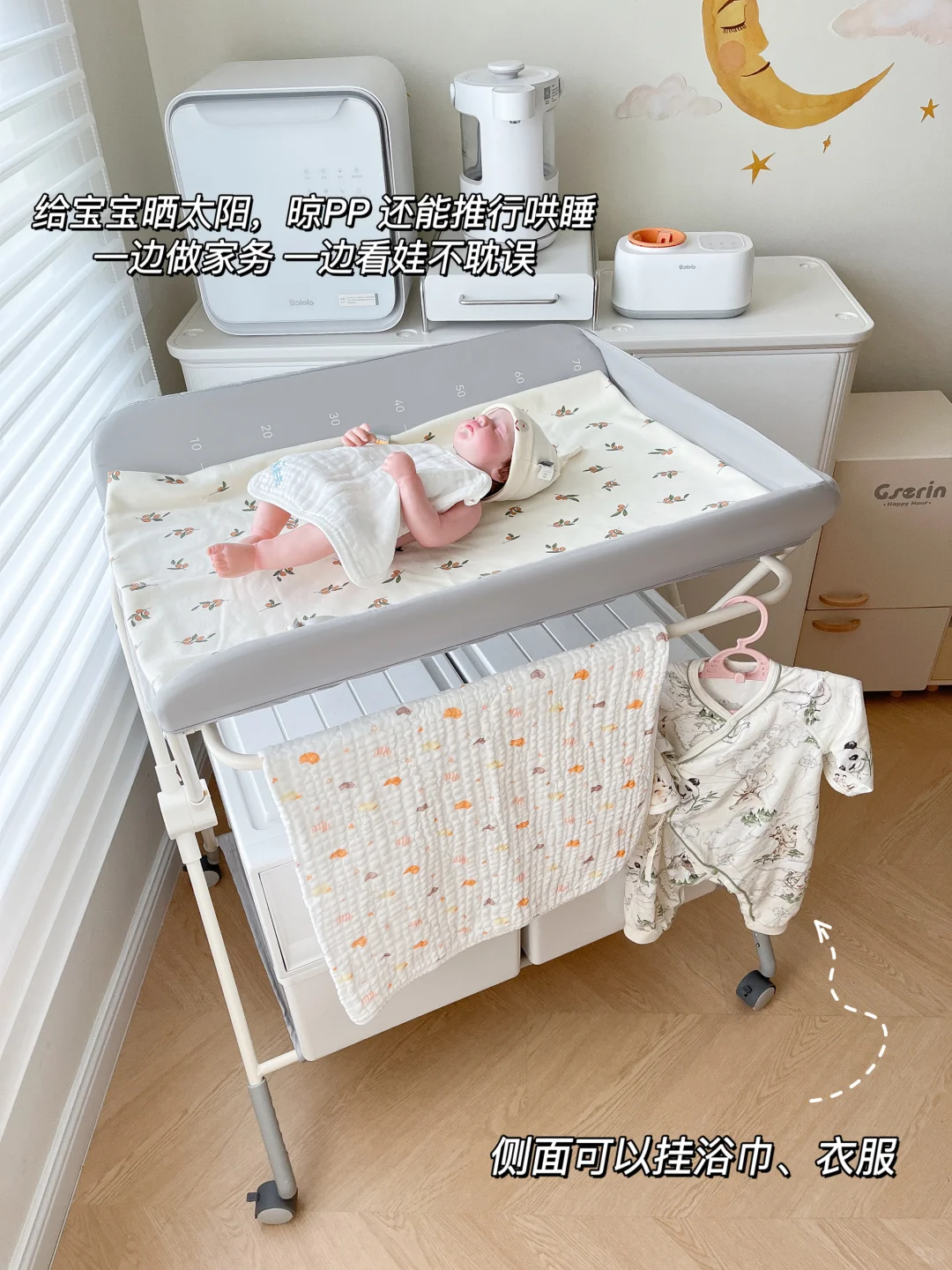 给宝宝换尿布做抚触,不用弯腰,避免产后腰痛,🐷队友185的个都不用弯腰,轻松换尿布