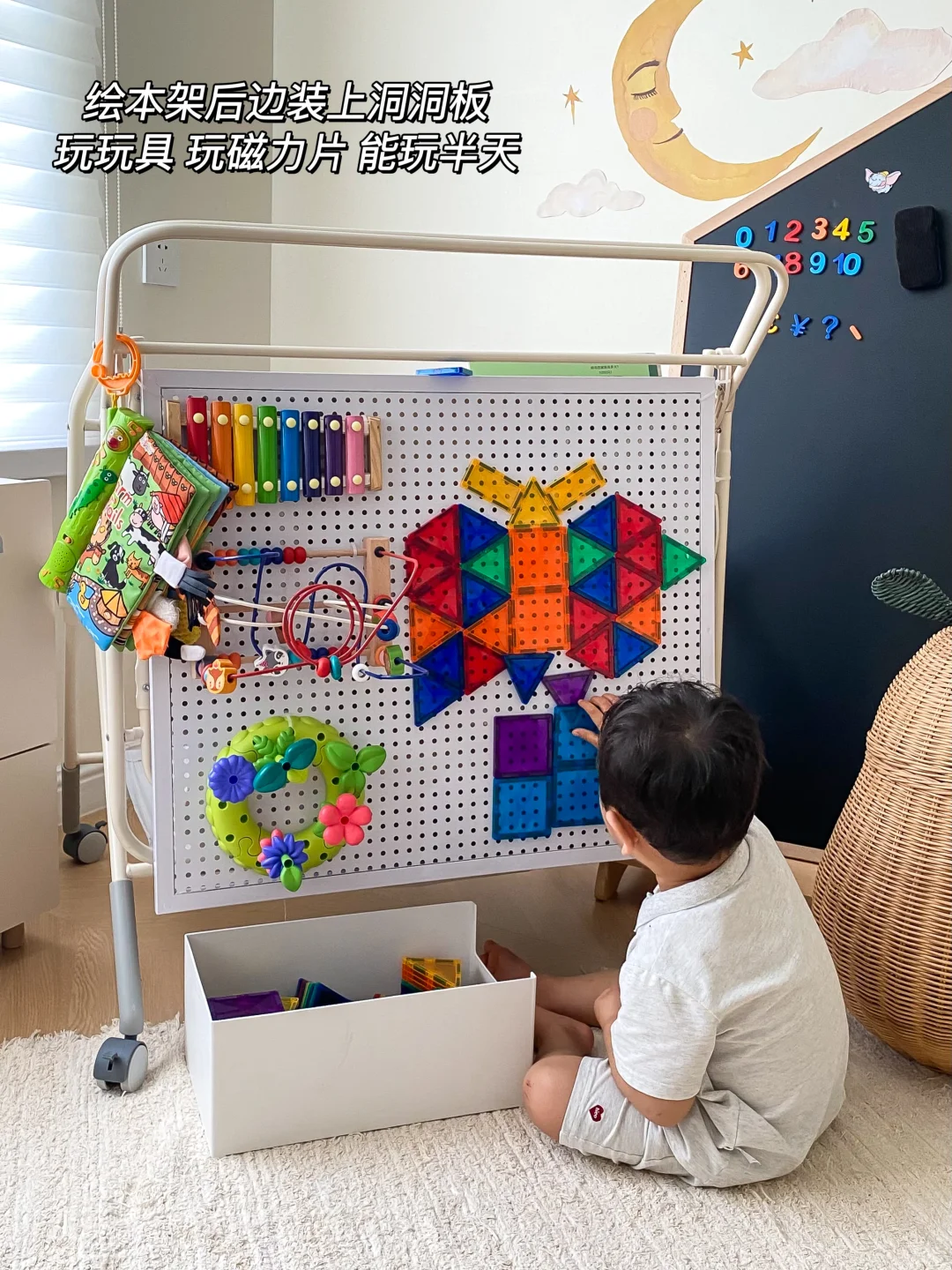后边装上洞洞板,给宝宝diy一个忙碌板,自己能玩好久不找妈