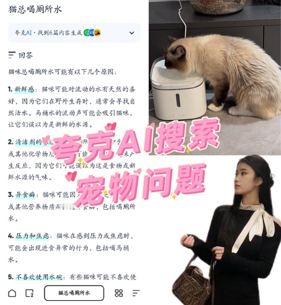 🐱🐱🐱小美的猫猫——葫芦,总是喝马桶里面的水,这个问题让小妹困扰了很久。这次利用夸克AI搜索寻找答案。原来小猫对流动的水更感兴趣,这下小美有了主意马上安排流动饮水器,让小美的“葫芦”远离马桶水!