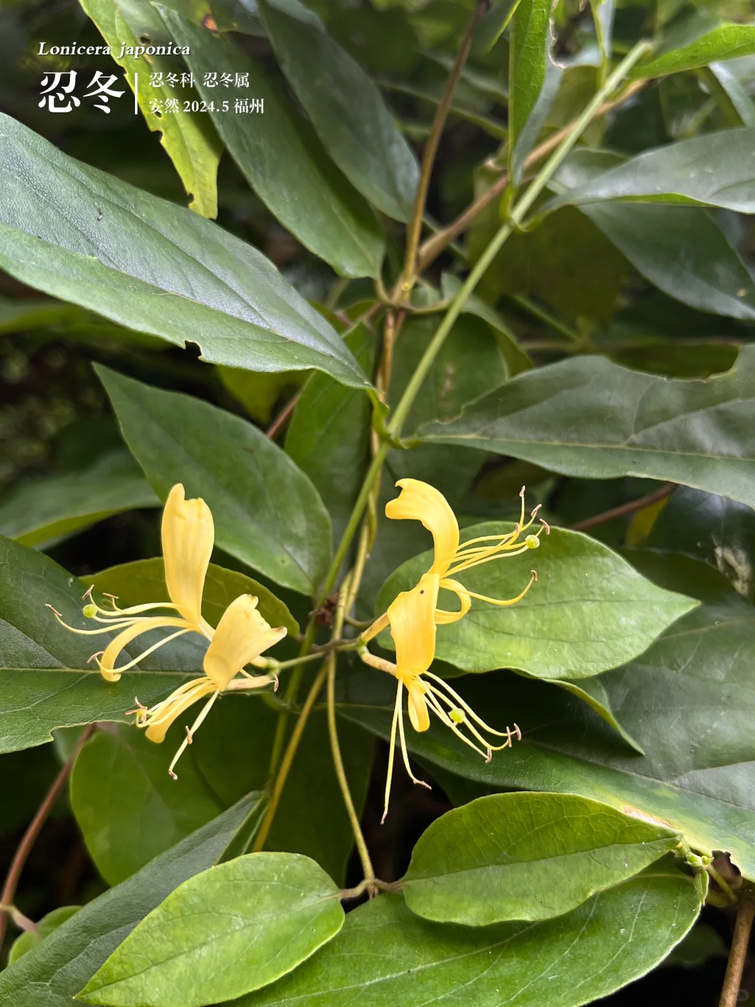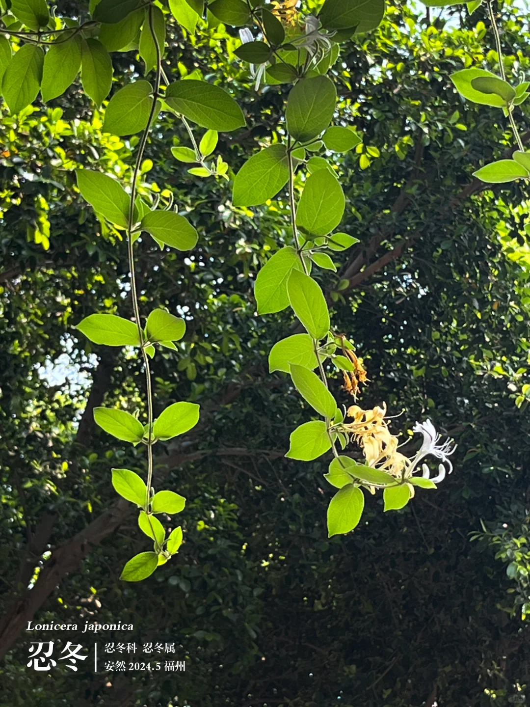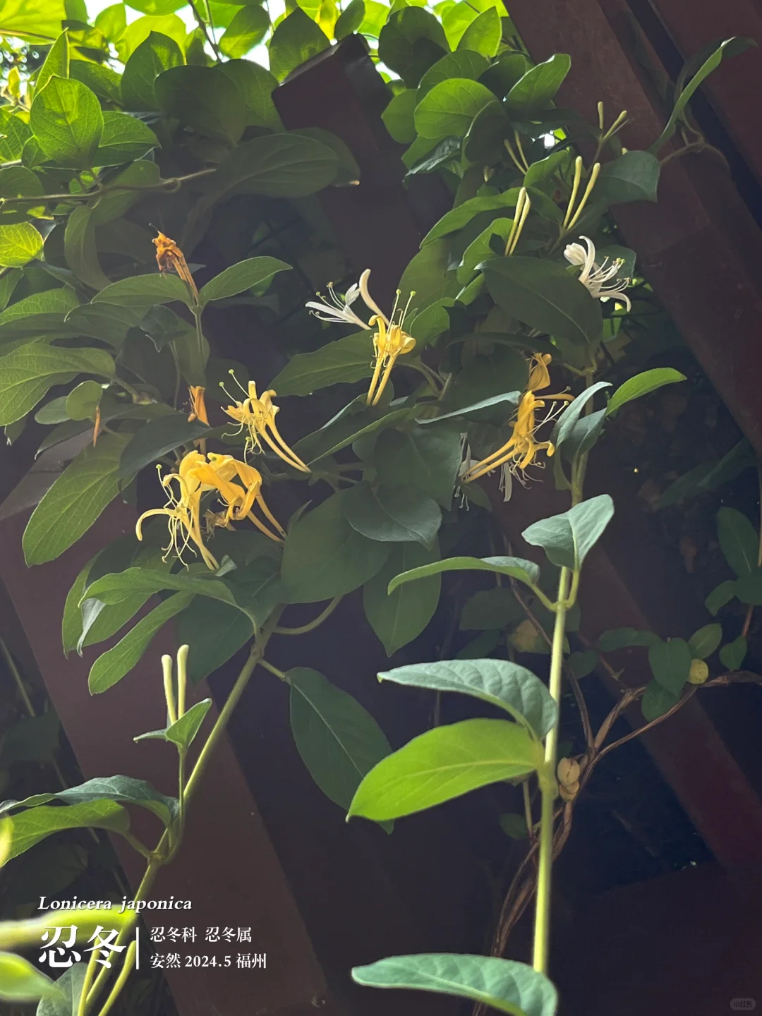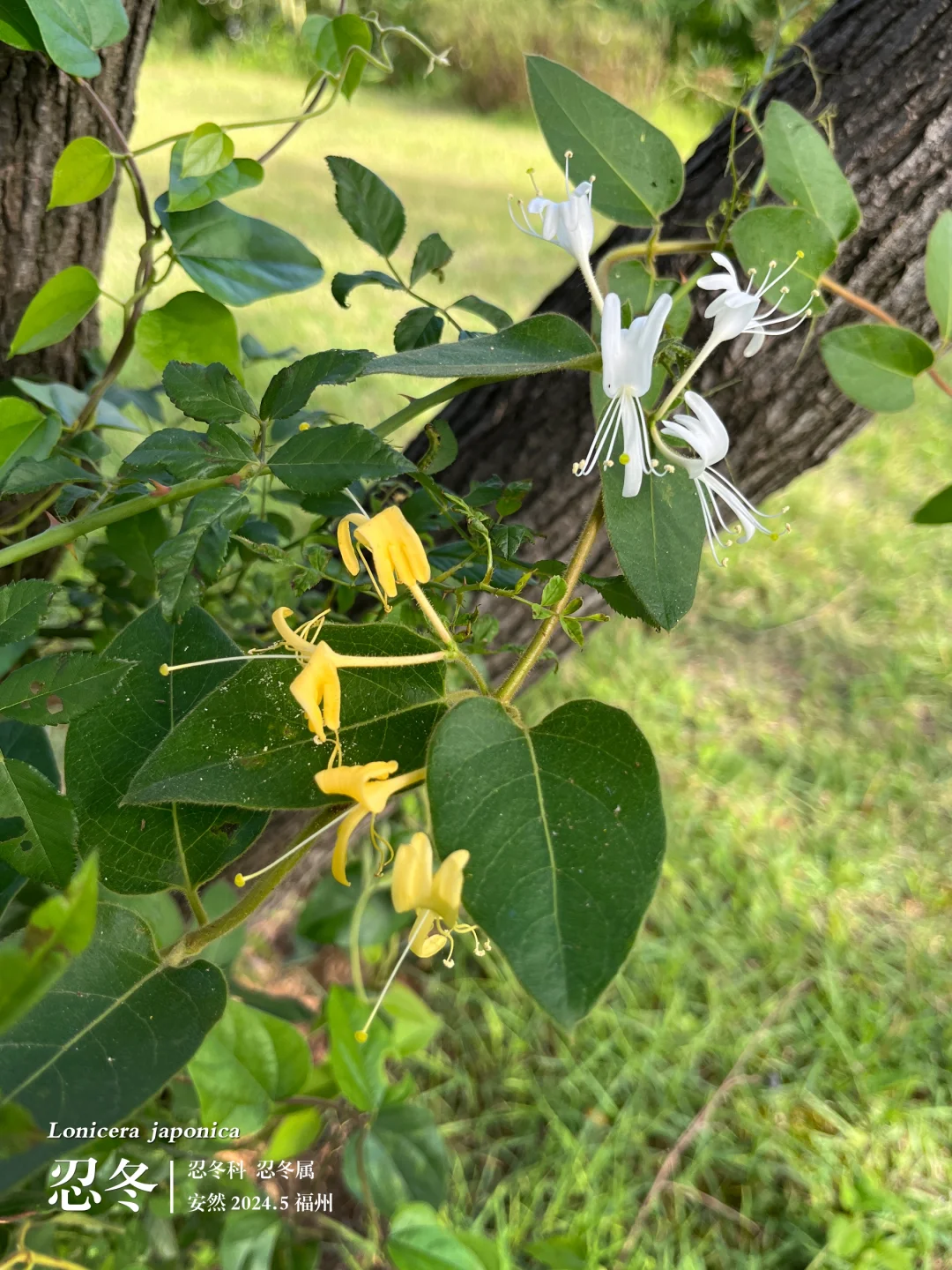 【俗名】老翁须、鸳鸯藤、蜜桷藤、子风藤、右转藤、二宝藤、二色花藤、银藤、金银藤、金银花、双花