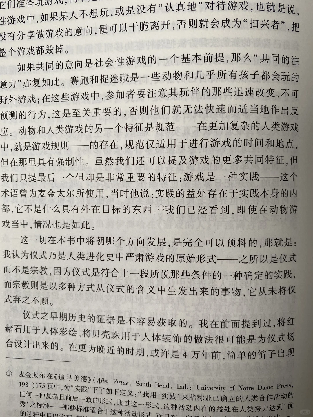 简单来说,作者认为在人类出现进化之前的时期,就存在模仿行为。哺乳动物的本能是模仿,这种游戏本能是宗教的源头