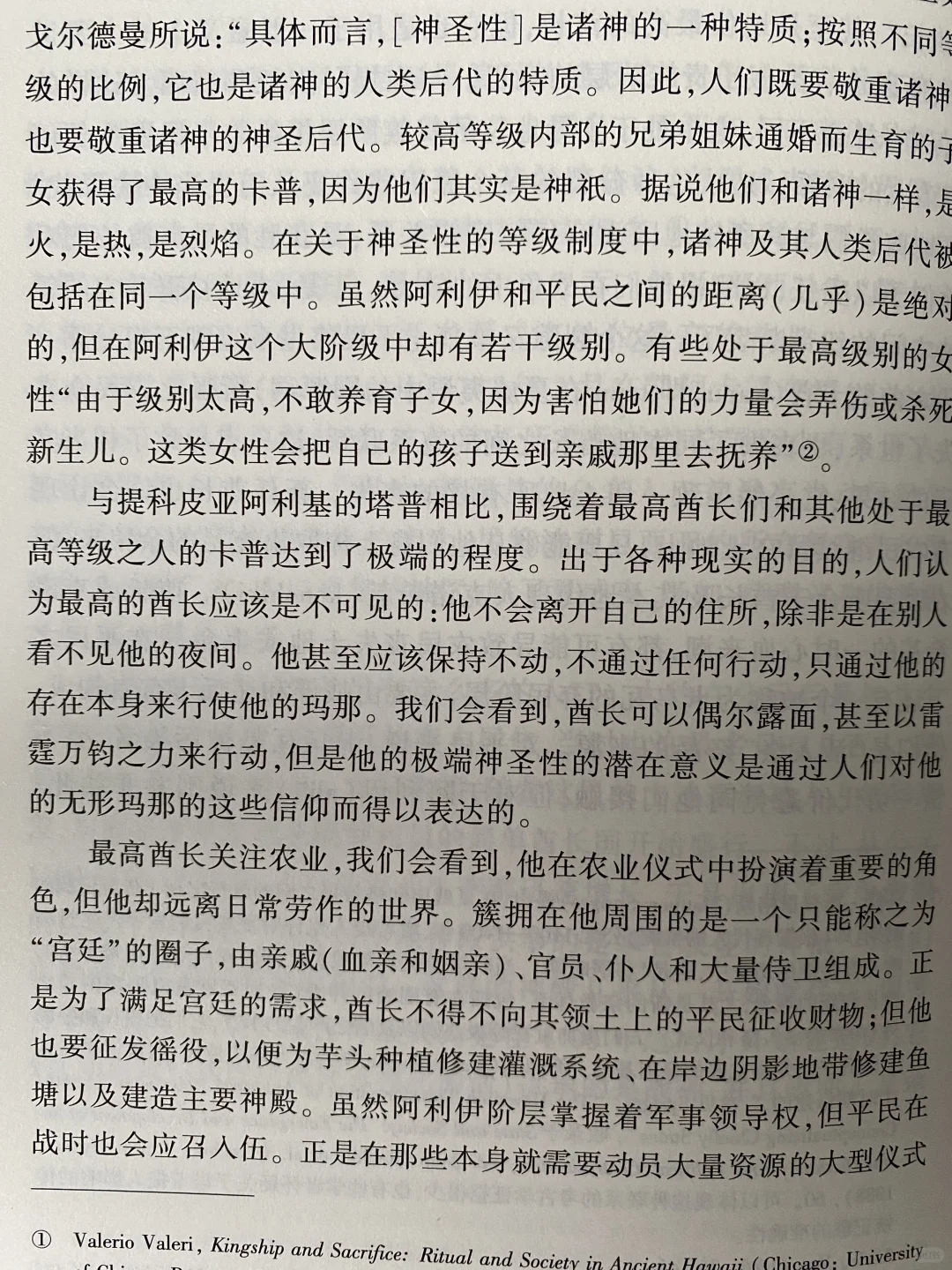 作者通过只有通过酋长实施仪式想到了部落的共同仪式,并称其本身带着道德平等