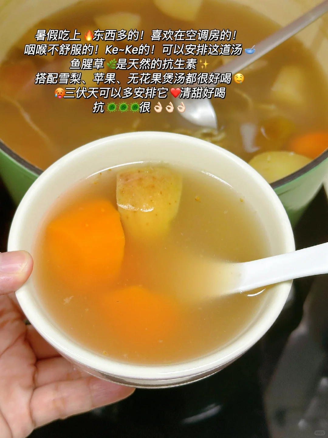 天气炎热🥵又加上台风天真的快热晕那种😵💫暑假孩子吃上🔥东西又多[失望R]喉咙痒痛ke~ke!立马来两碗鱼腥草无花果苹果瘦肉汤润润好舒服😌清热解🦠又下🔥[赞R]