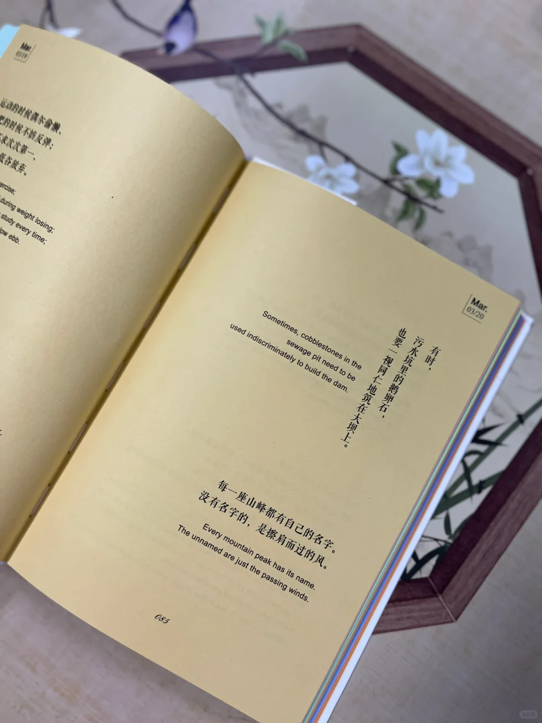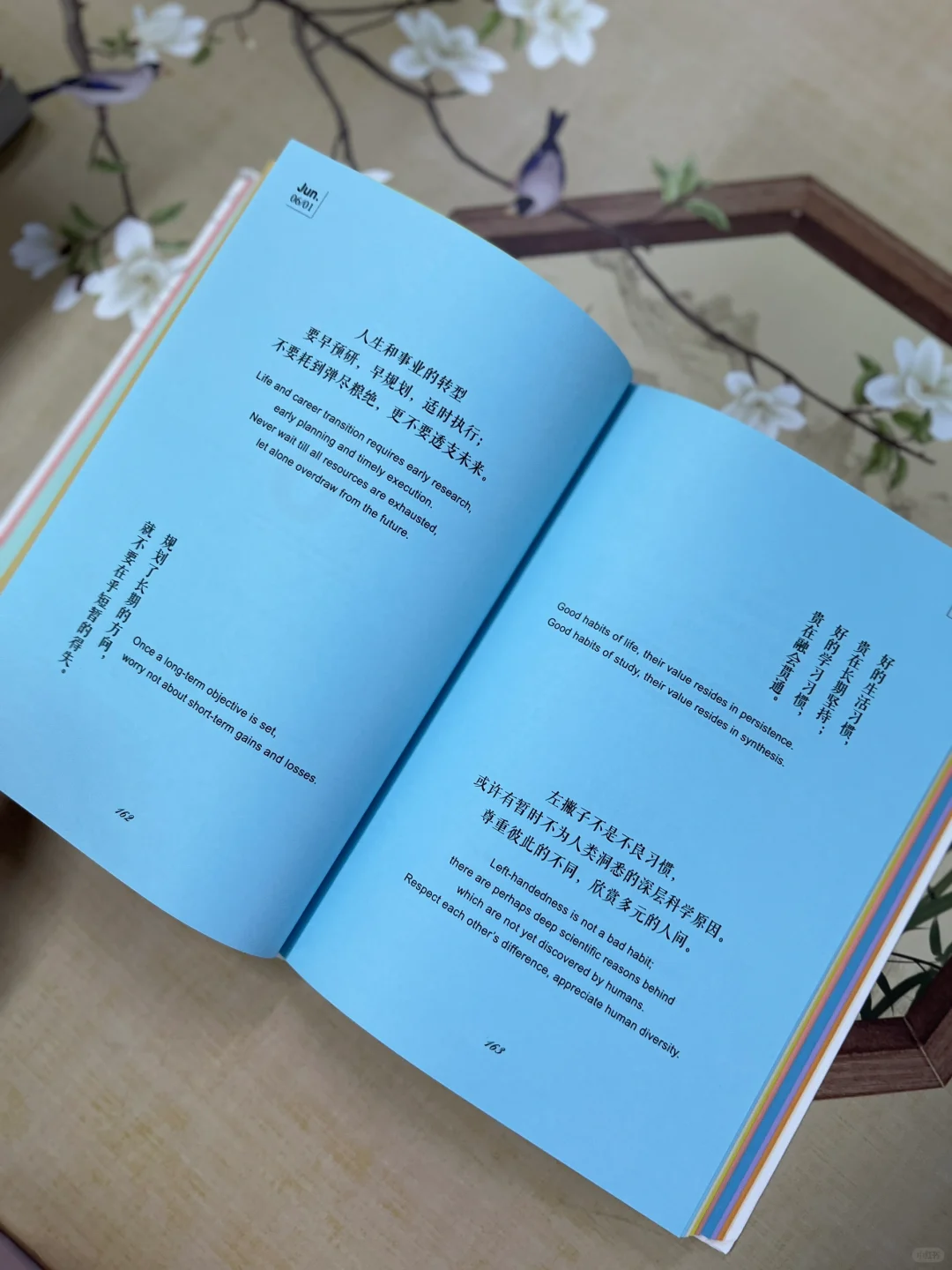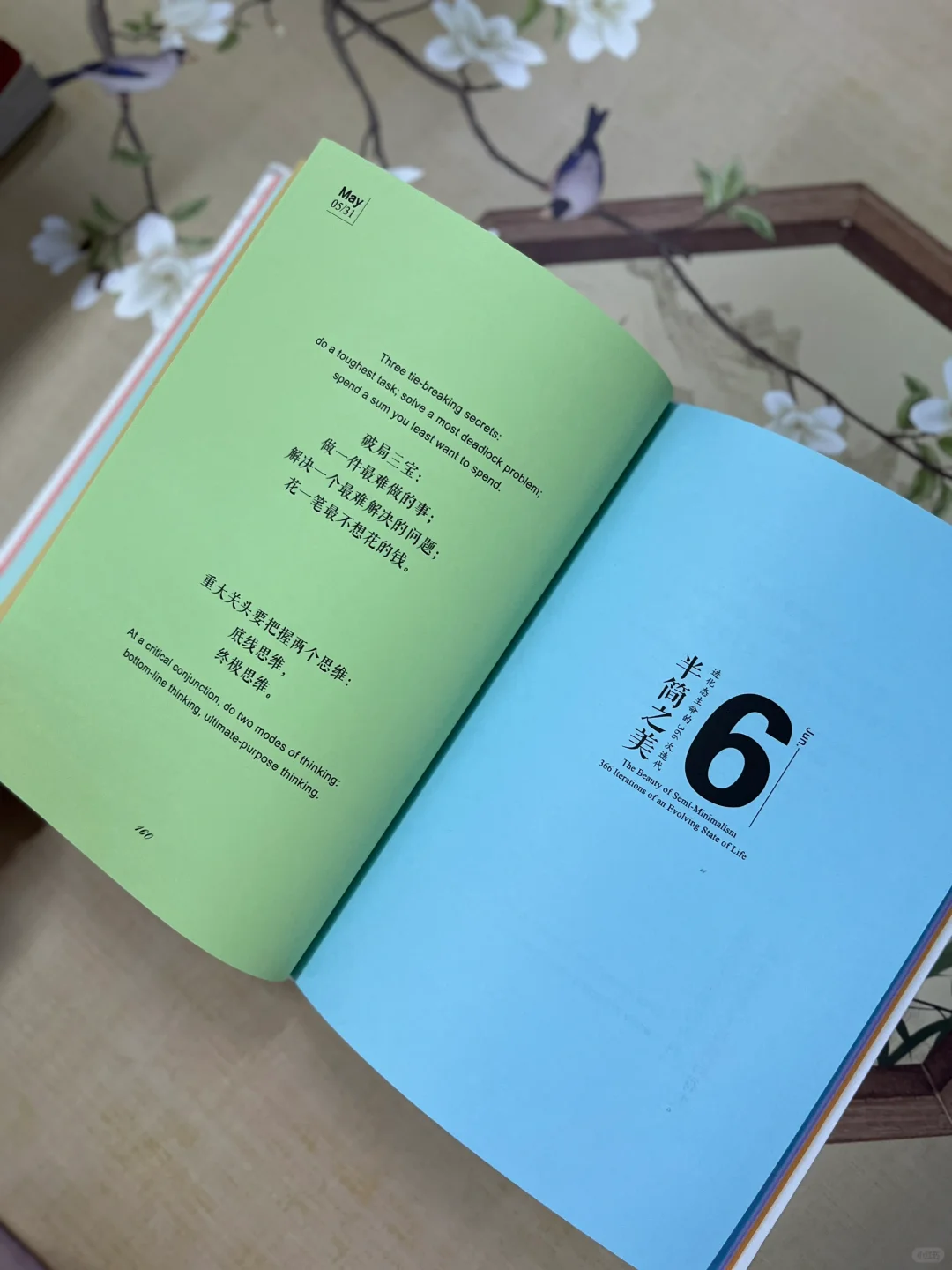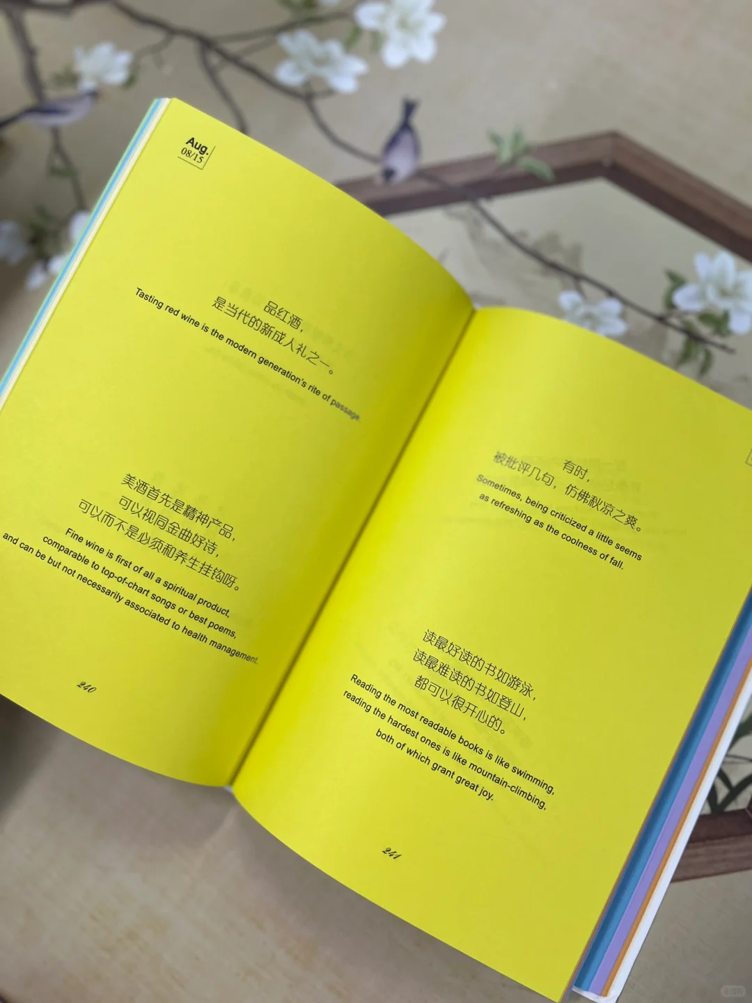 云关秋的这本《半简之美》以日历形式,每日双语呈现两段简洁语录和箴言总结,关于人生智慧、修身养性、事业成败、生活美学、读思感悟……随手一番,总能引起共鸣。