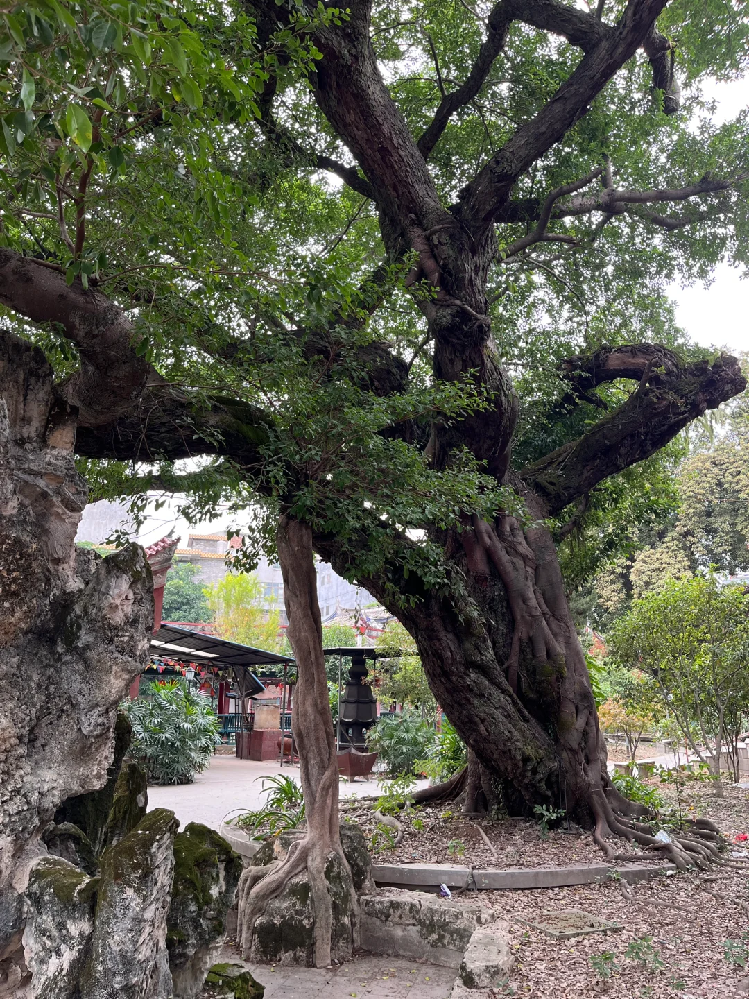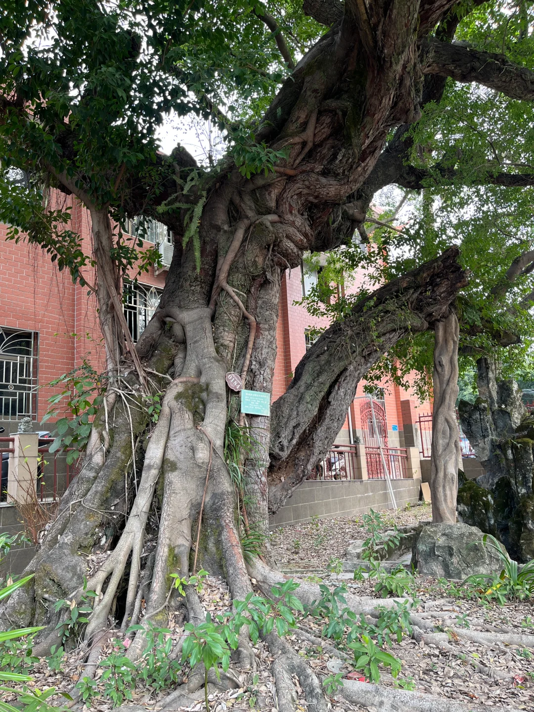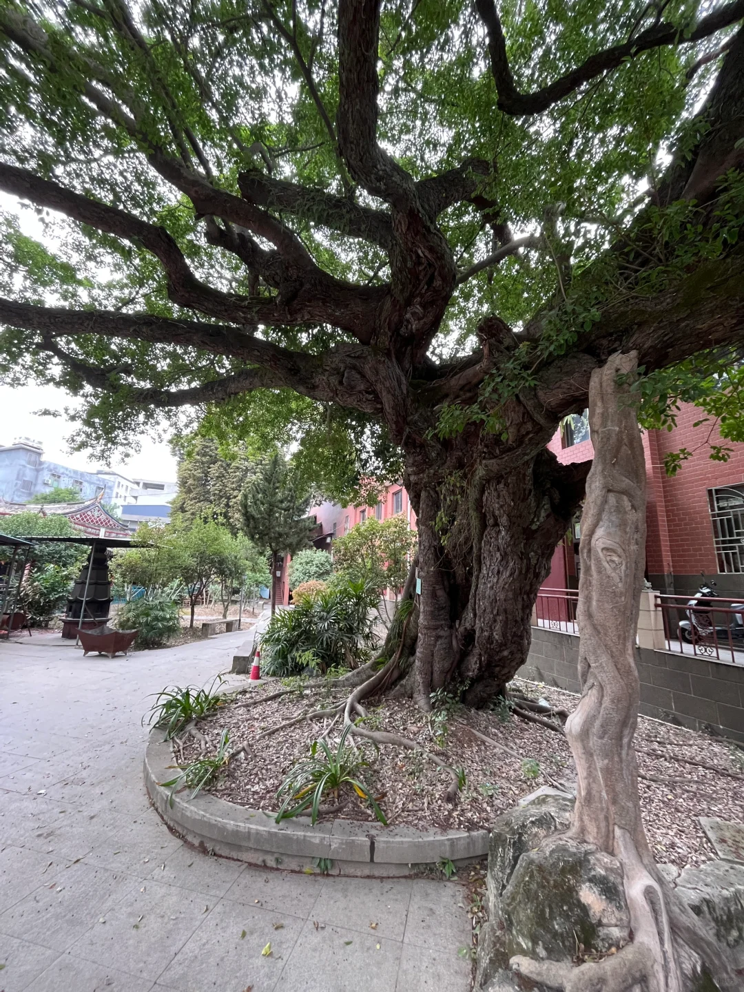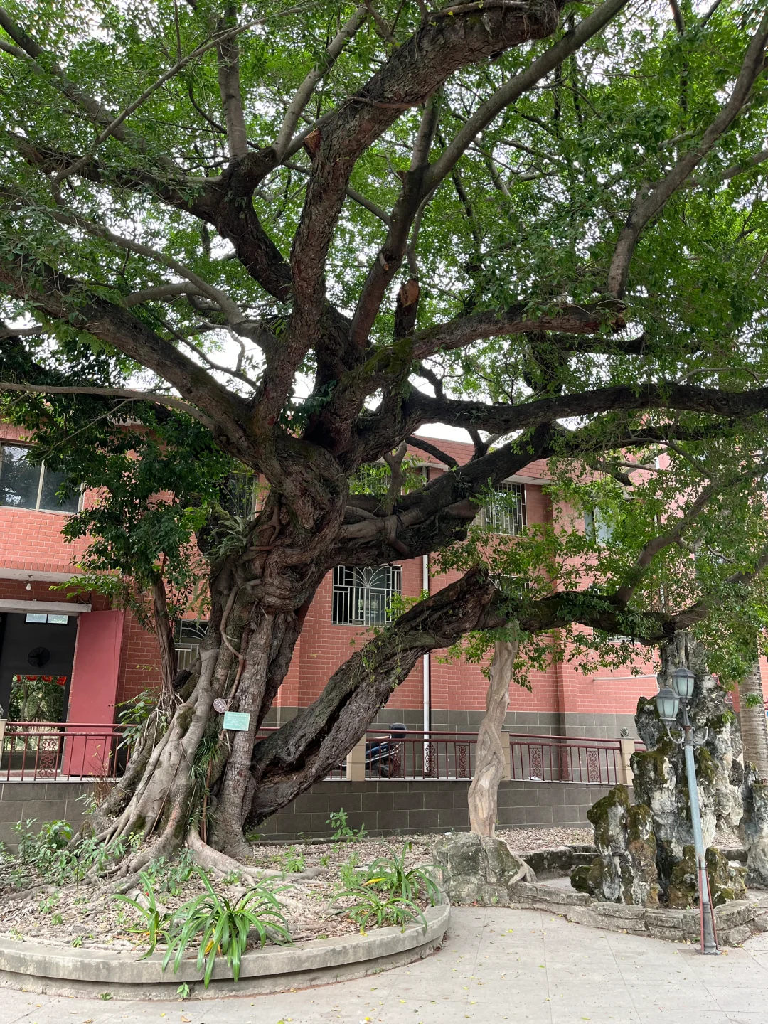祠堂内院入口处,有棵巨大如伞的小叶榕,牌上显示种植于清康熙年间,距今已有310年的历史。