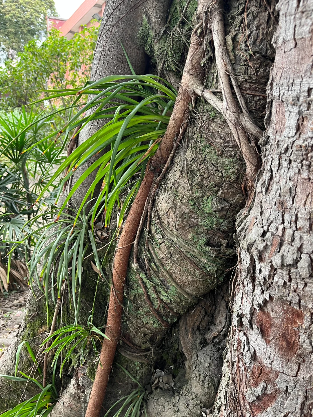 榕树气生根缠绕树干生长,给榕树带来不一样的肌理变化,非常有画面感。