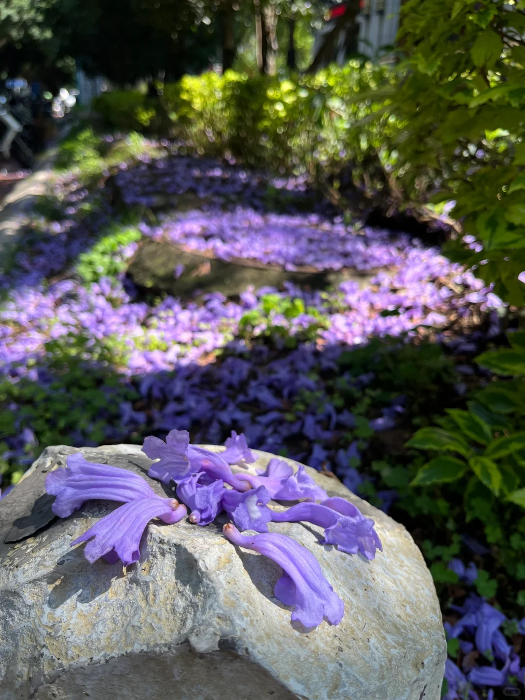 美死了!那天骑车,沿途路边有落下的蓝花楹,堆积在一起,瞬间觉得收集起来晒一晒,身边谁要是刚好结婚都能直接铺地上用hhhhhh。