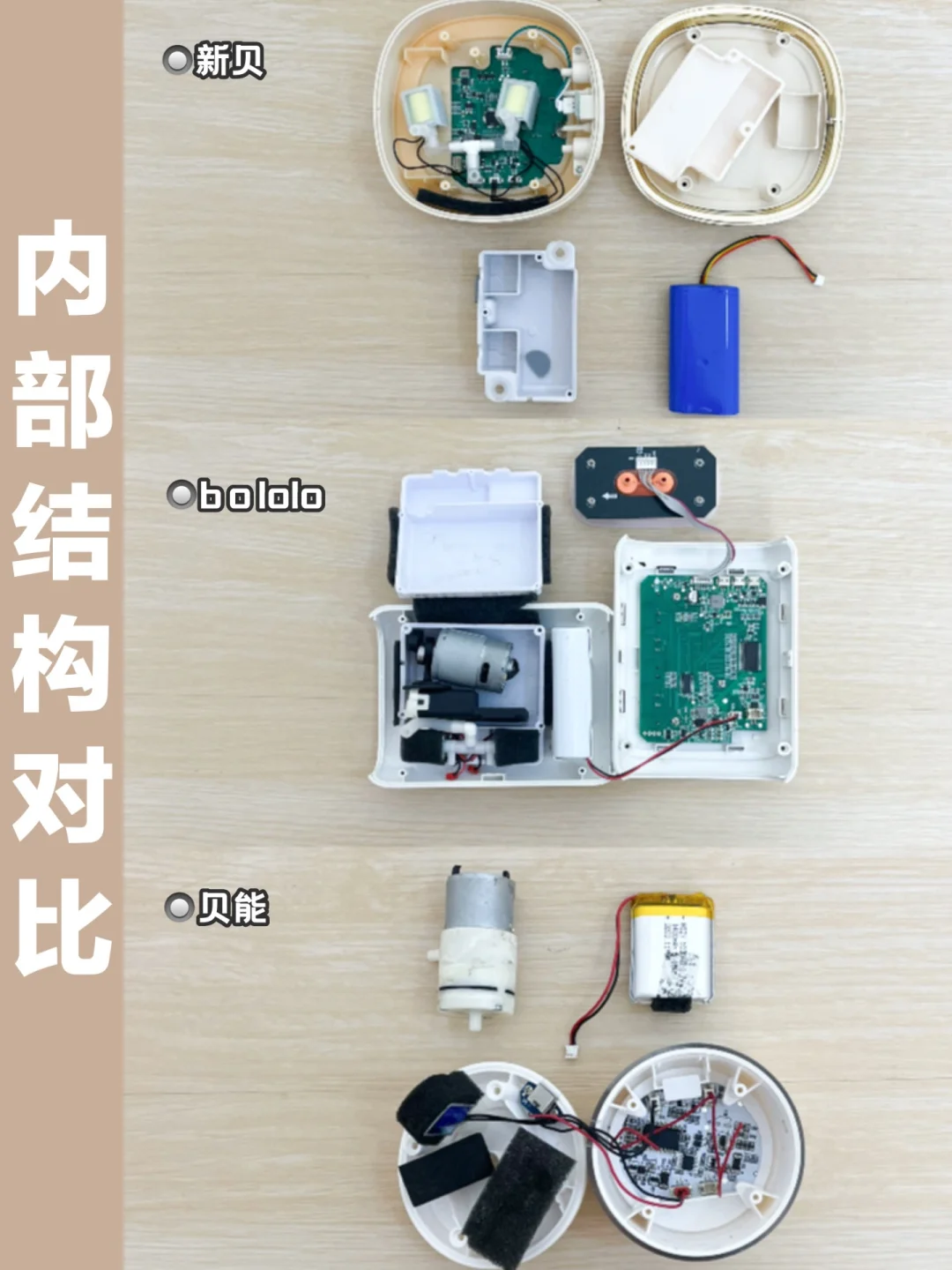 吸奶器的结构其实并不复杂,主要分为电路板、电池、吸乳泵和电磁阀门