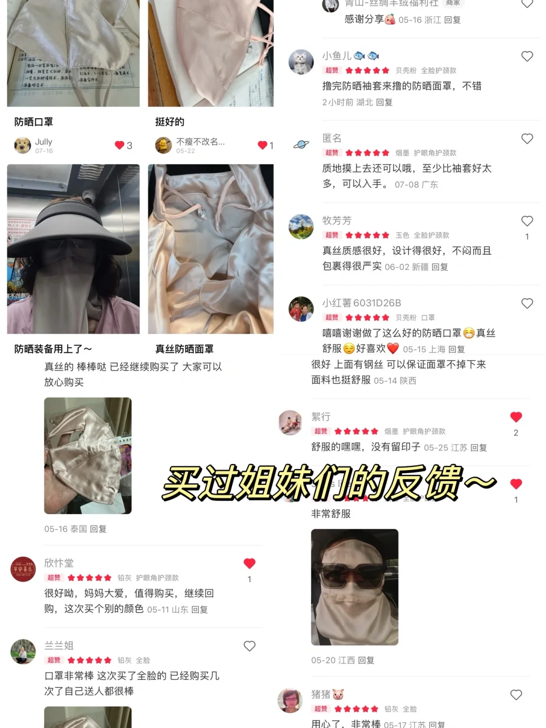 大家可以看看市面上真丝的防晒面罩,基本都要卖💰一两百了,我们杭州源头真丝工厂一件也是批发价,大家可以看看买过姐妹们的反馈!