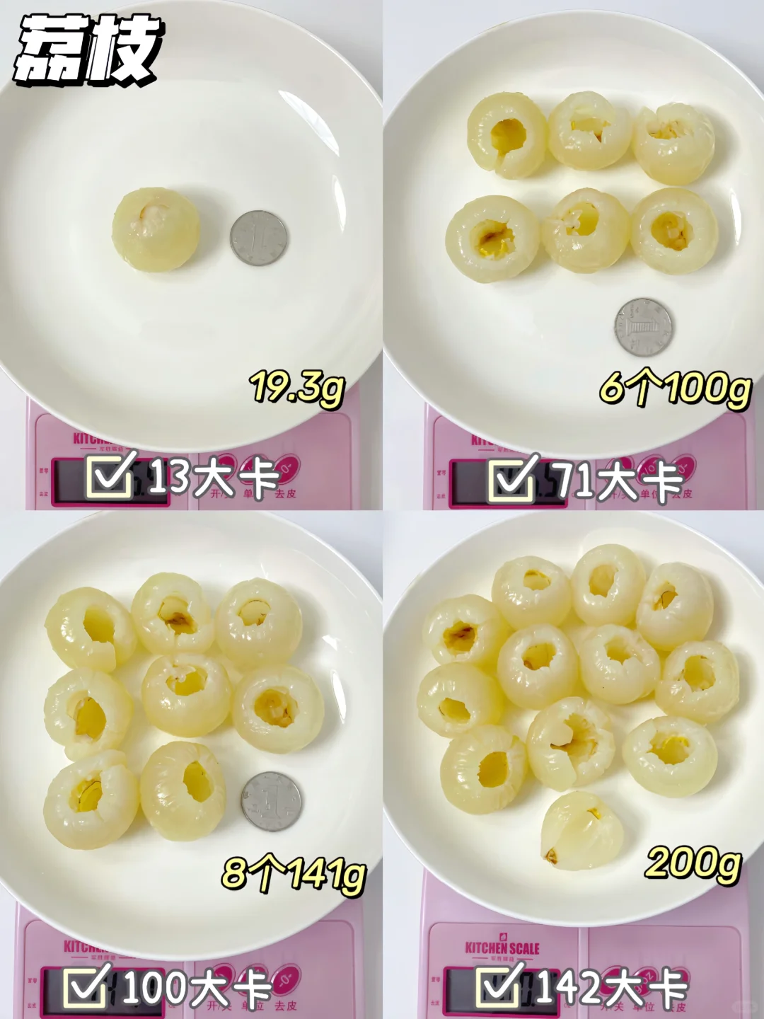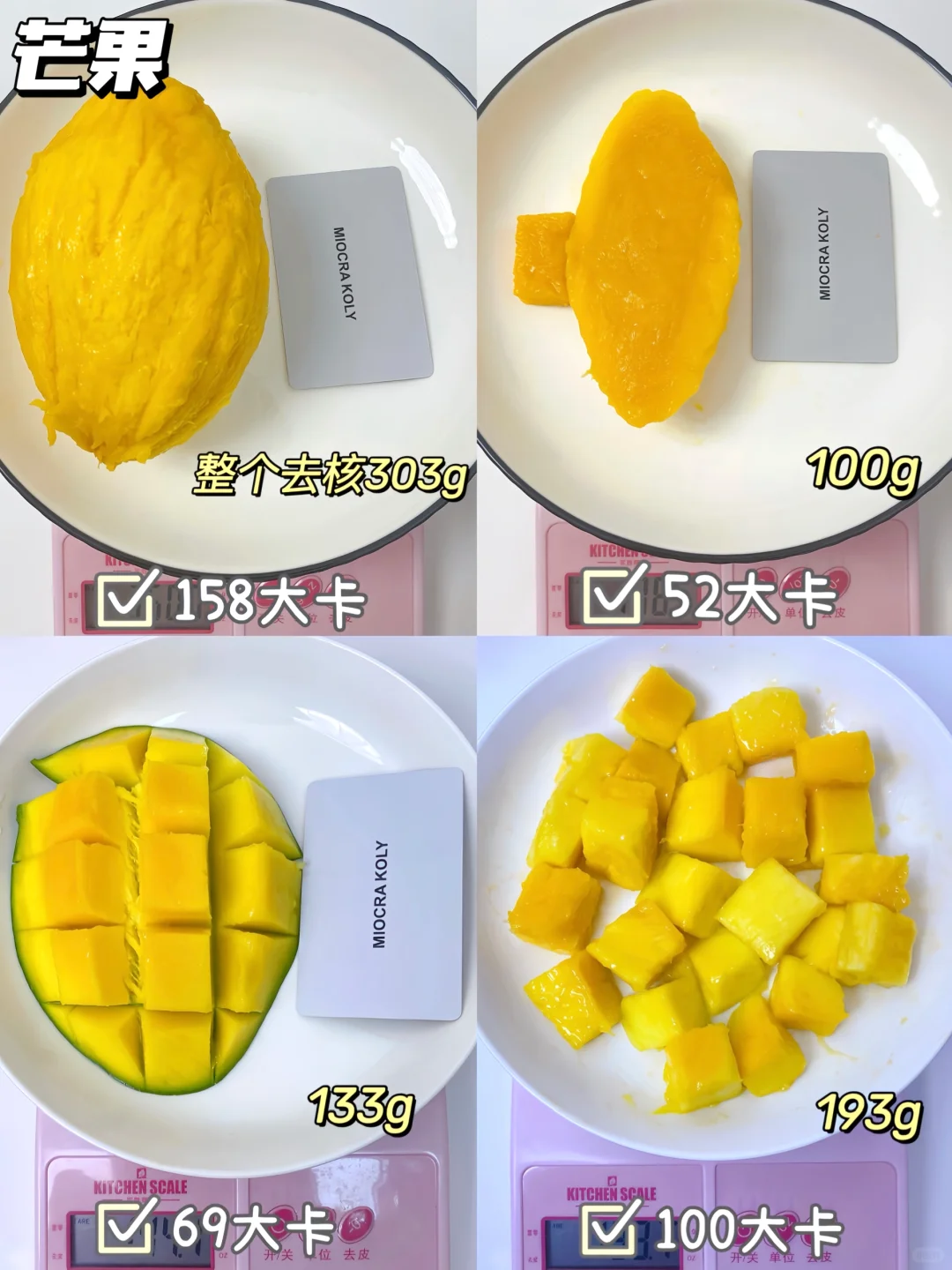 100g夏季水果热量测评来咯! 今天分享几款夏天比较常吃的水果,仅供参考! 1⃣晴王 2⃣西瓜 3⃣荔枝 4⃣芒果