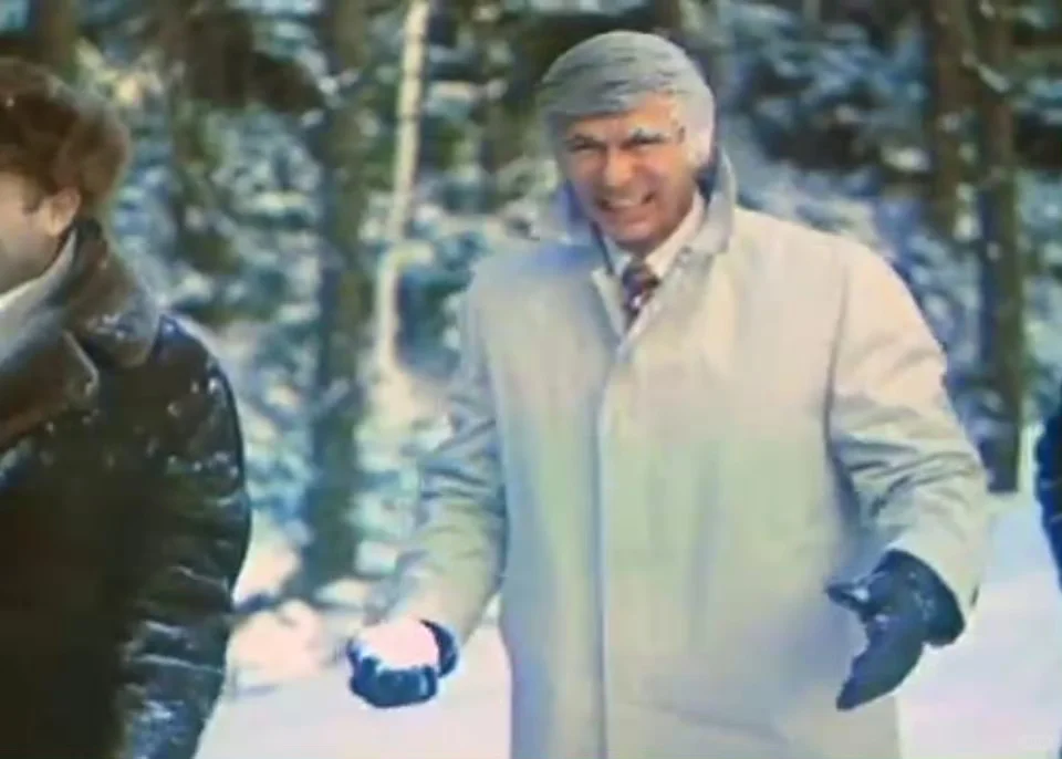 图6-7:美苏宇航员在苏联打雪仗,拿着雪的是美国宇航员斯莱顿