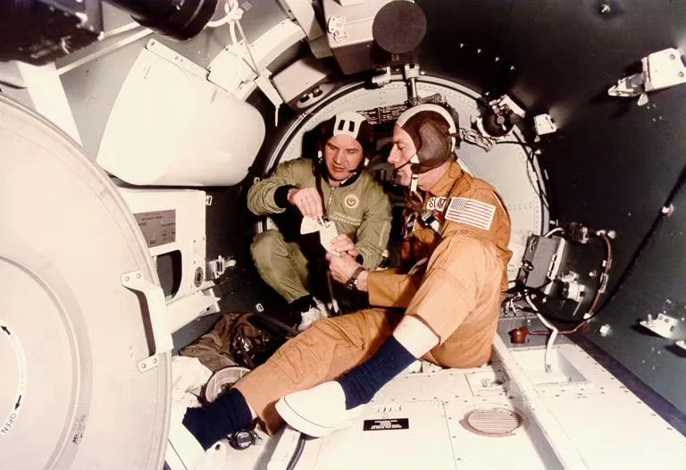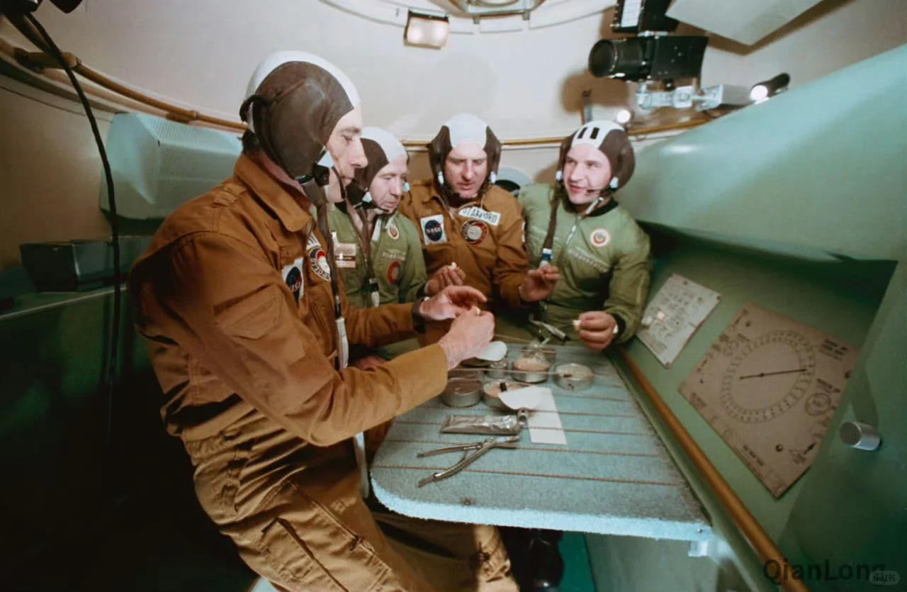 图1-5:双方宇航员在当时属于国家机密的飞船内部训练