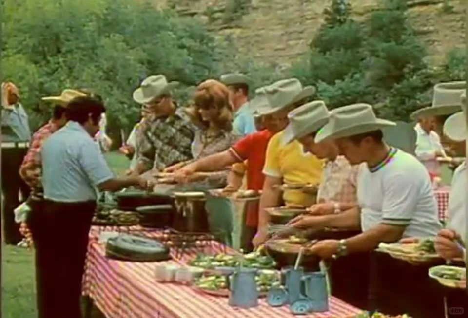 图8-9: 美苏宇航员一起带着牛仔帽,在休斯顿的野外开烧烤派对,图9是太空行走第一人,苏联宇航员列昂诺夫