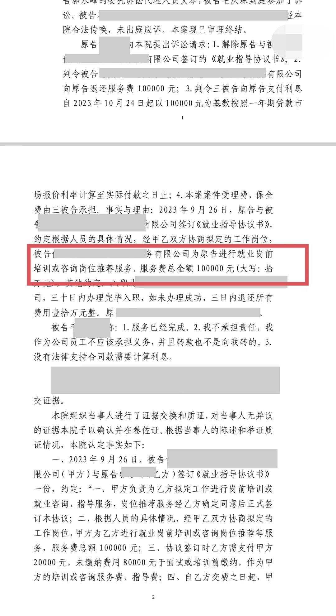 当事人找工作被骗10万元,现在判决已经下来了,我方胜诉!