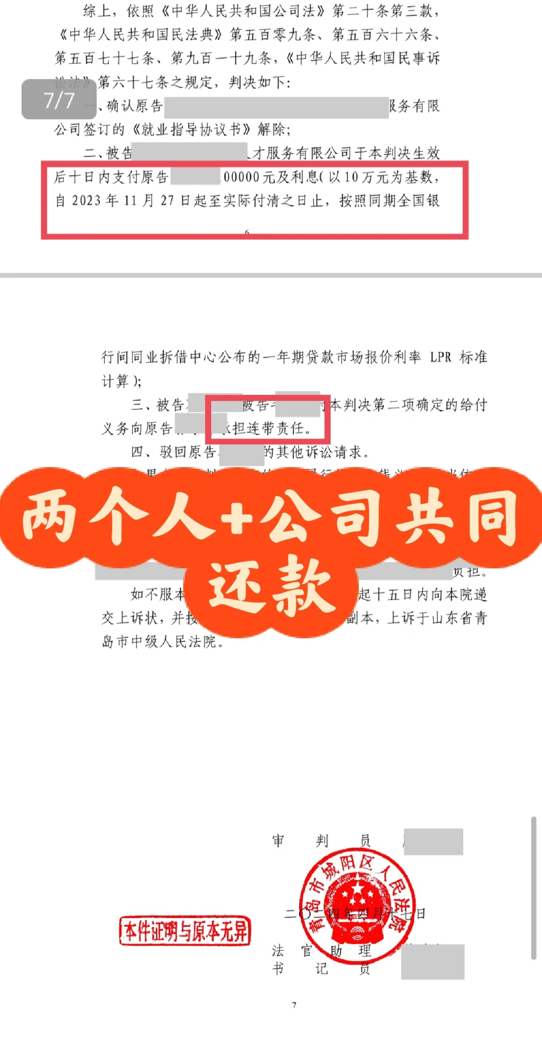 4月18日,收到法院判决短信,我多少有点忐忑,没敢一下子打开链接,有点害怕不是连带责任。因为找工作被骗的工作,公司承担责任是一定的,但是个人能够承担连带责任,有多难,律师知道。