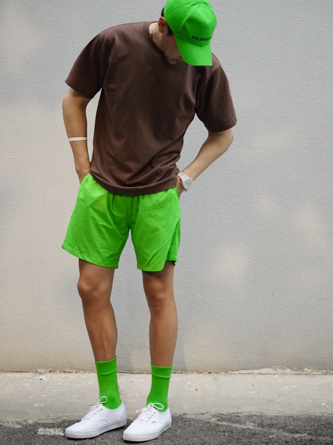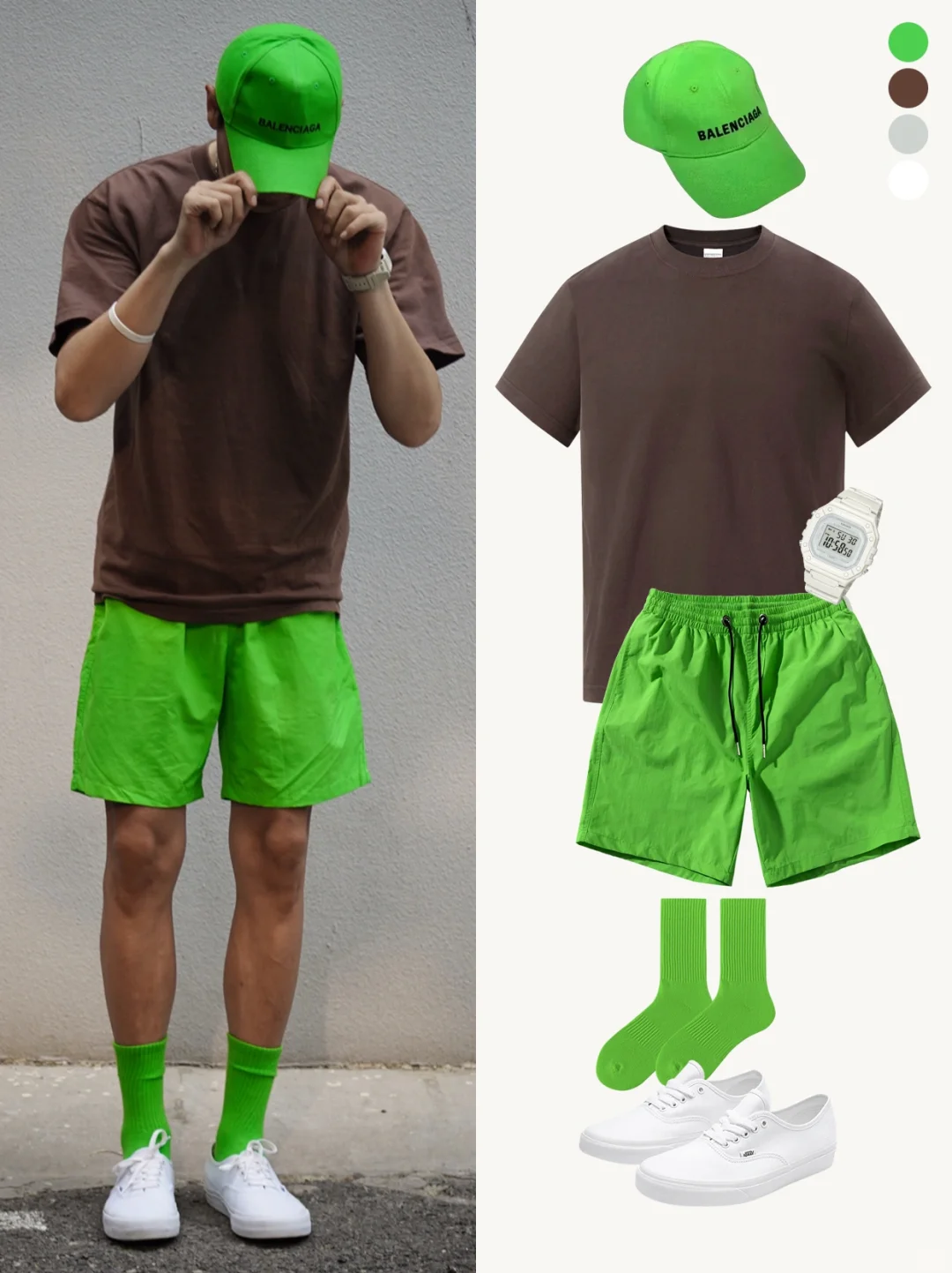 ▪️搭配荧光绿的沙滩裤,周末度假成焦点!