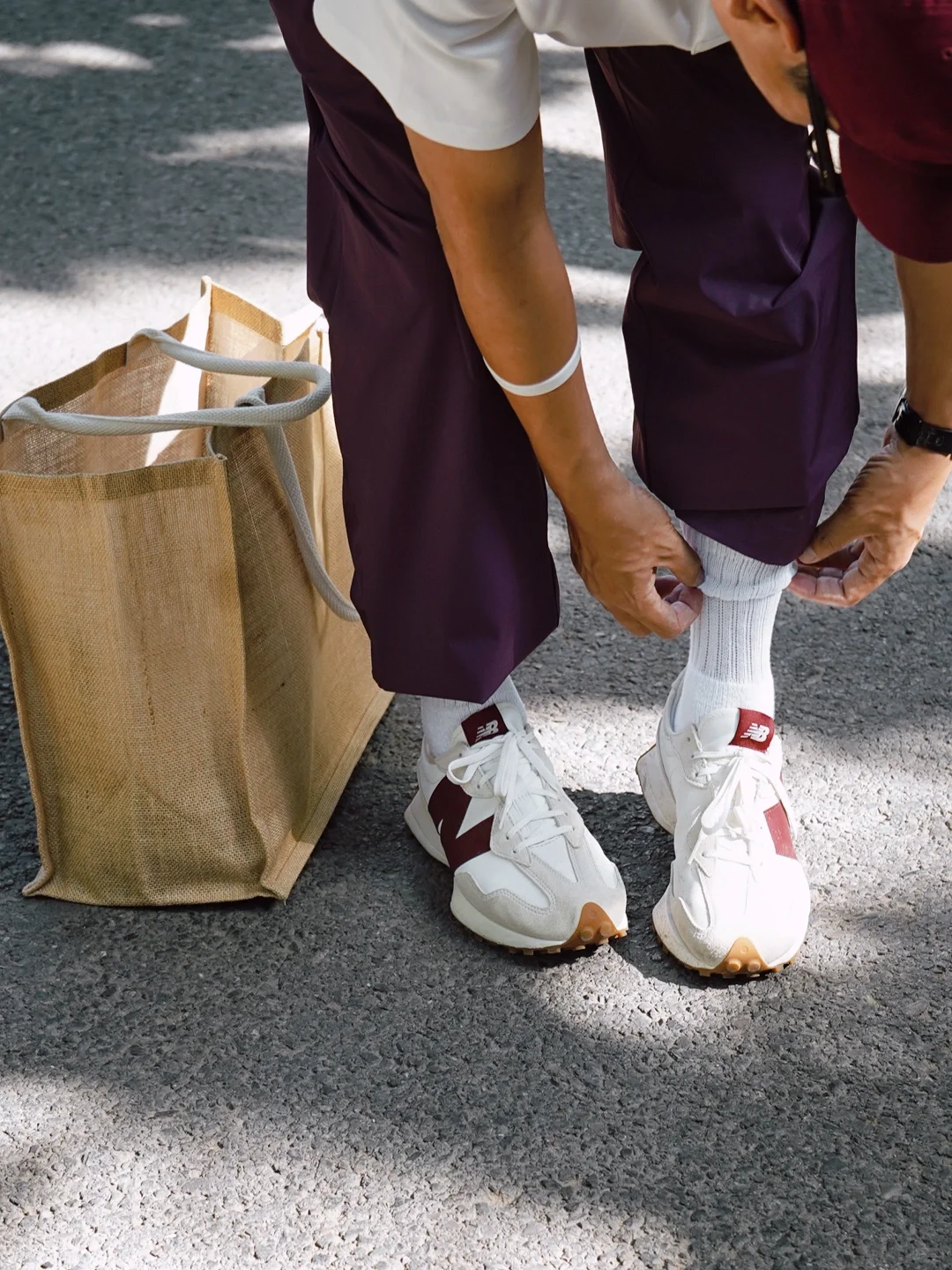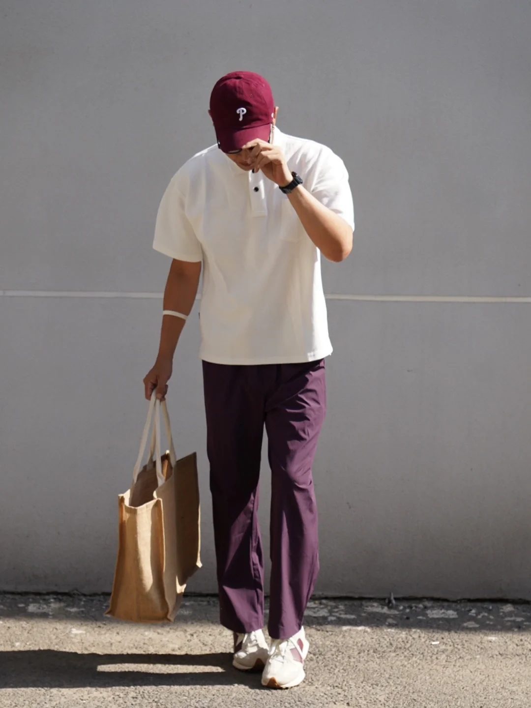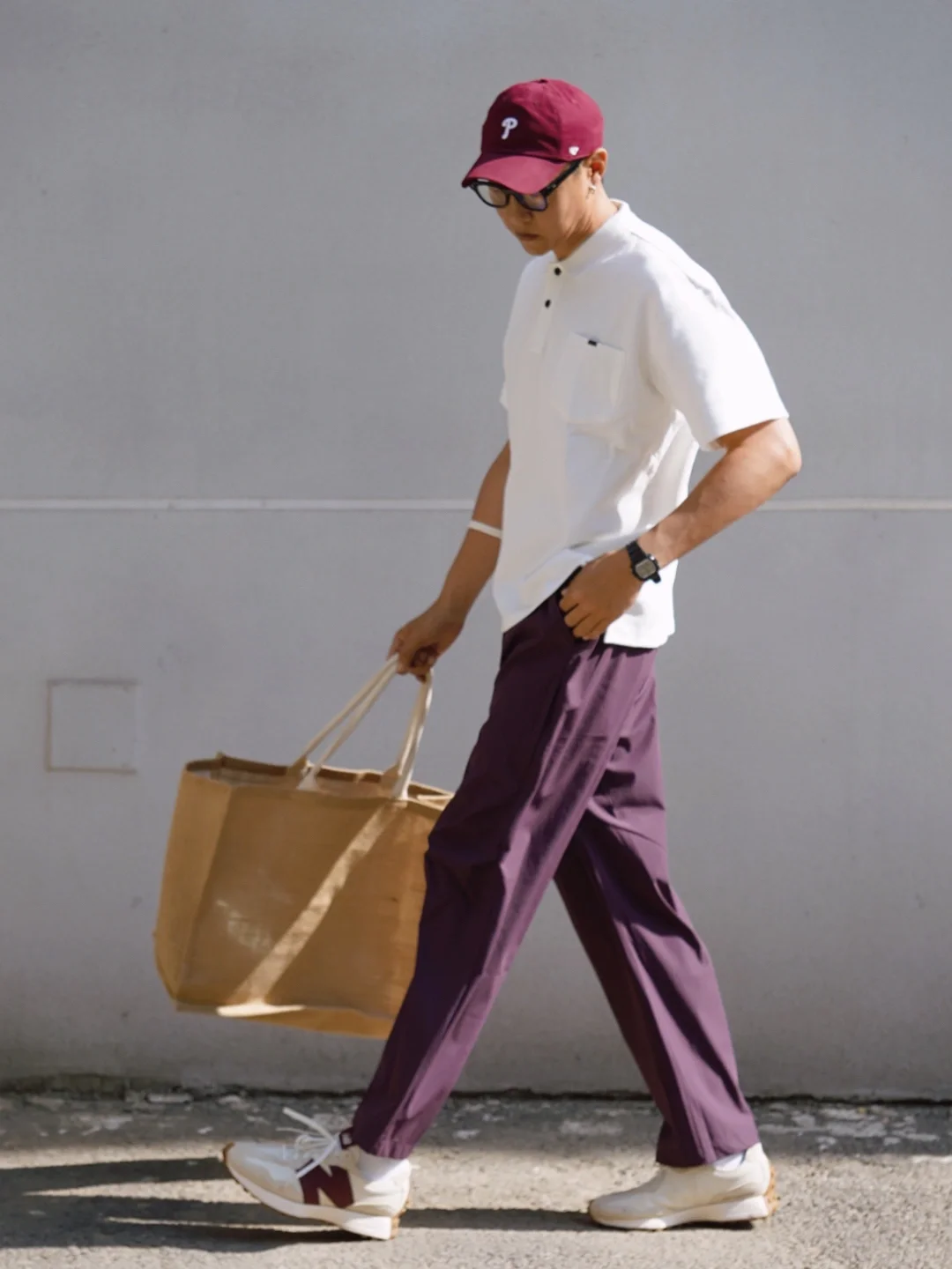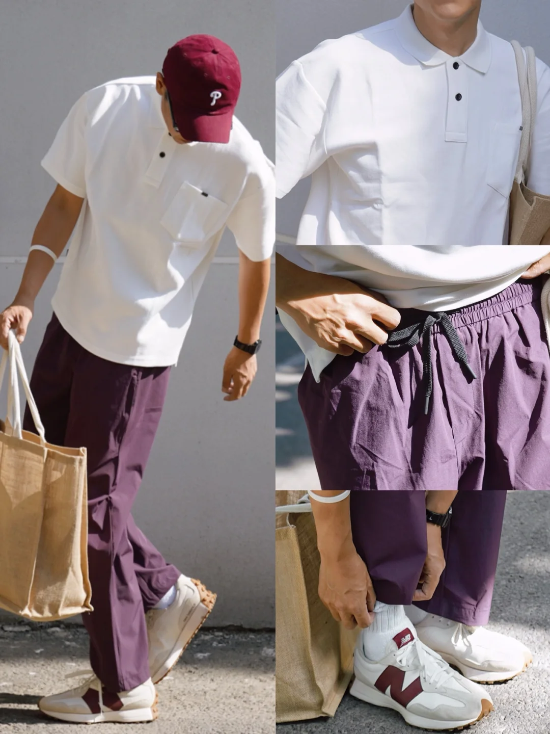 🍷红酒色与白色的巧妙搭配,既经典又不失时尚感。酒红色的棒球帽与酒红色速干长裤相得益彰,再搭配上宽大的白色polo衫,轻松展现出休闲与舒适。而跑鞋巧妙的融入了酒红色元素,与整体配色相互呼应。一个大容量的包包也是不能少的,既能装下出行的必需品,又增添了整体的实用性。今日的配色,如同今天的心情一般,充满了轻松惬意的松弛感😌正在去咖啡店的路上…